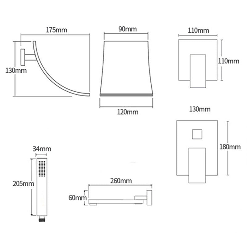 Spezifikationen des schwarzen Wasserfall-Badewannenhahns: