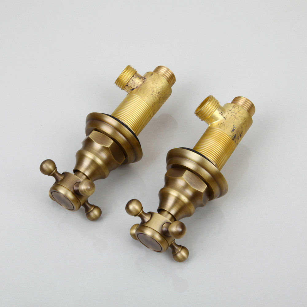 This beautiful, nostalgic 2-piece washbasin faucet (wall mount) has a bronze finish and adds a classic charm to your bathroom: