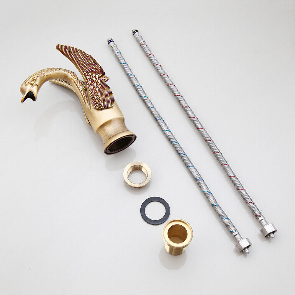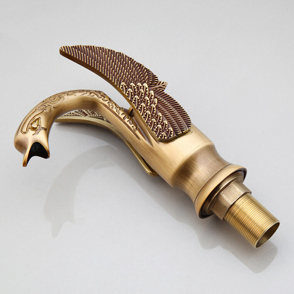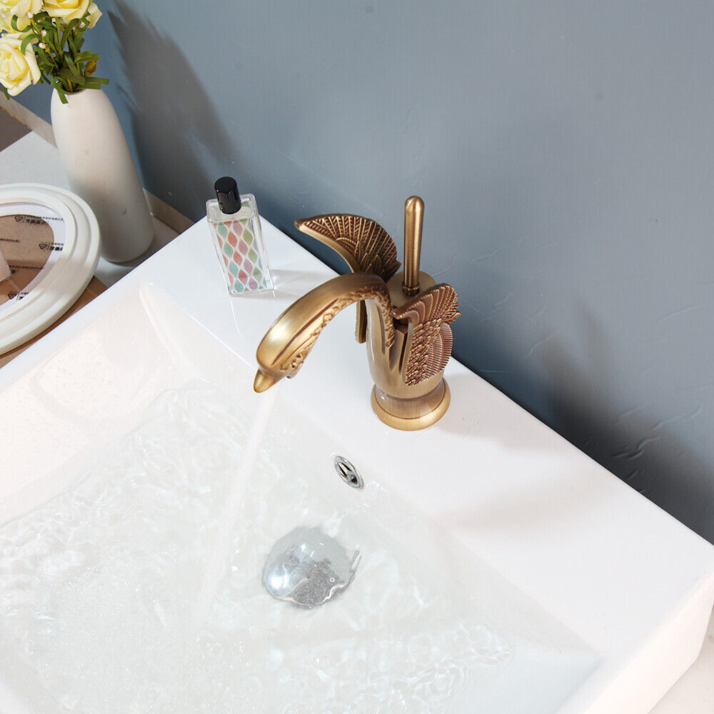 - Bronze-colored mixer tap in the shape of an elegant swan