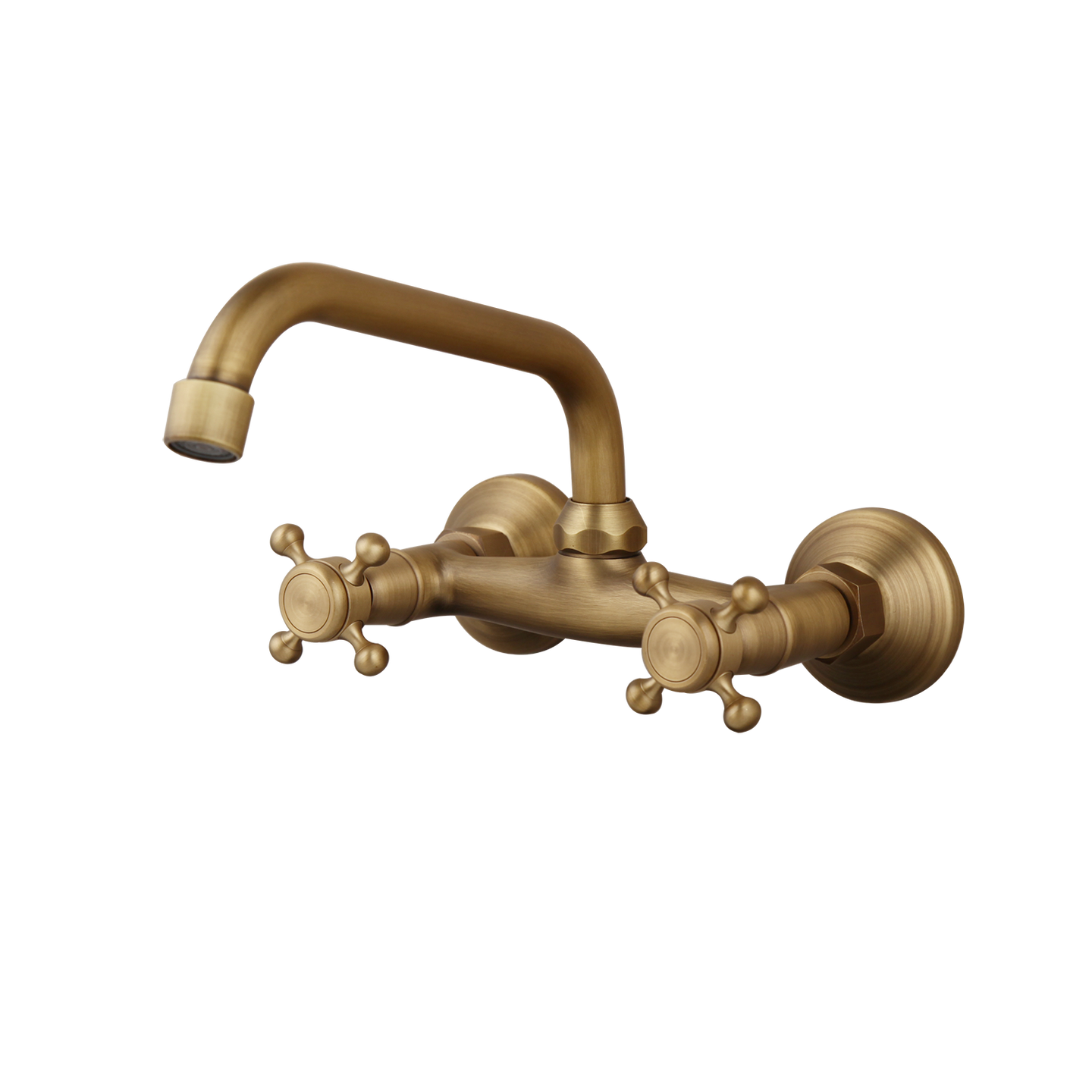 Bring a touch of rustic charm and nostalgia to your bathroom with this stylish bronze wall-mounted faucet. Its timeless design and warm bronze finish make this faucet a real eye-catcher, perfect for a rustic or classic bathroom.