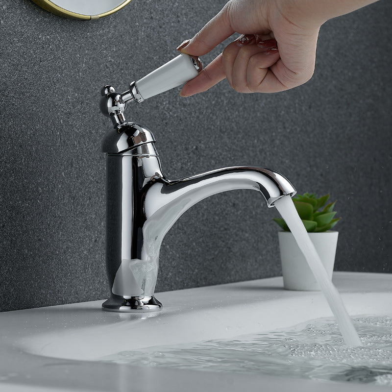 Chroom nostalgische wastafelkraan met keramische hendel