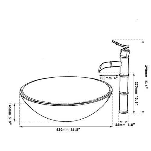 This is a complete set with the tempered glass wash basin, pop-up drain (chrome) and wash basin tap as shown.