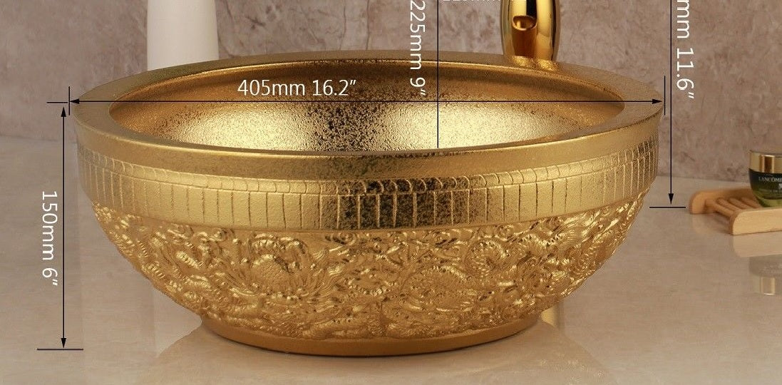 - Gold-colored earthenware wash bowl