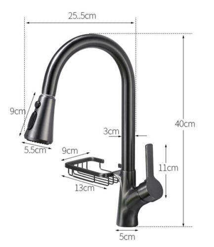 - Kitchen faucet gun metal with pull-out spray head and soap dish