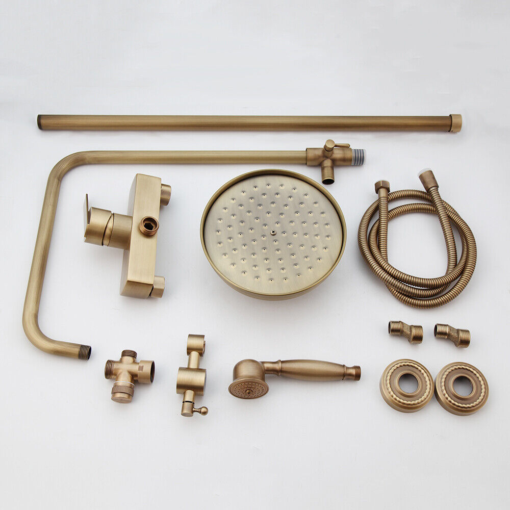 Beautiful bronze-coloured surface-mounted shower set in a country style.
