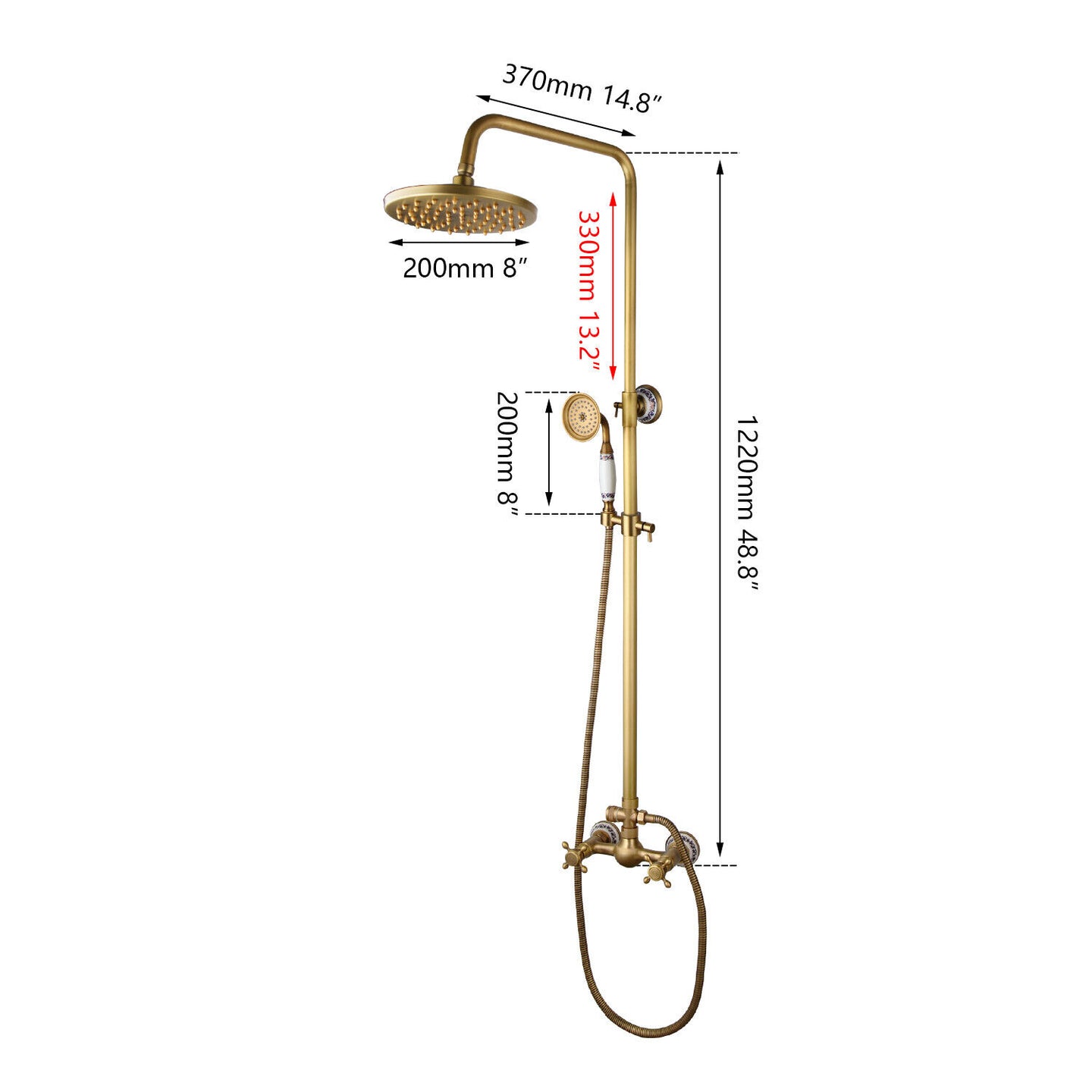 - Total height of the rain shower: 1220 MM