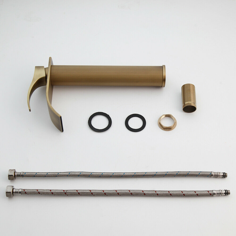 This rustic bronze waterfall tap adds an extra luxurious look to your bathroom.