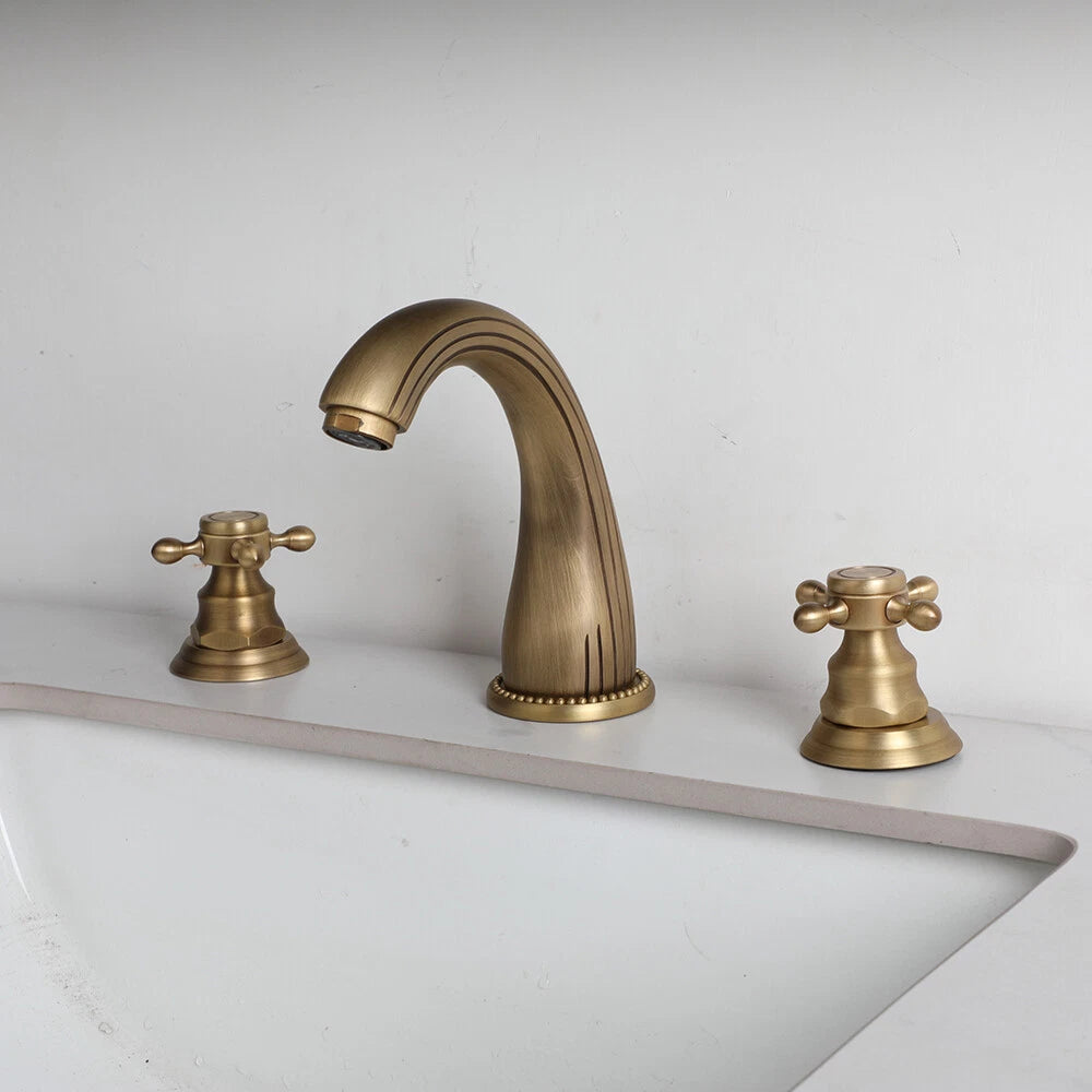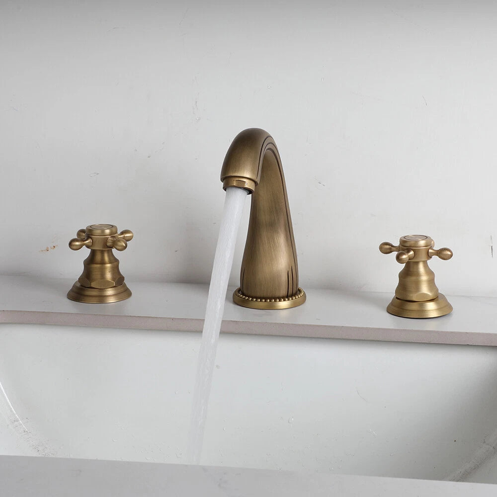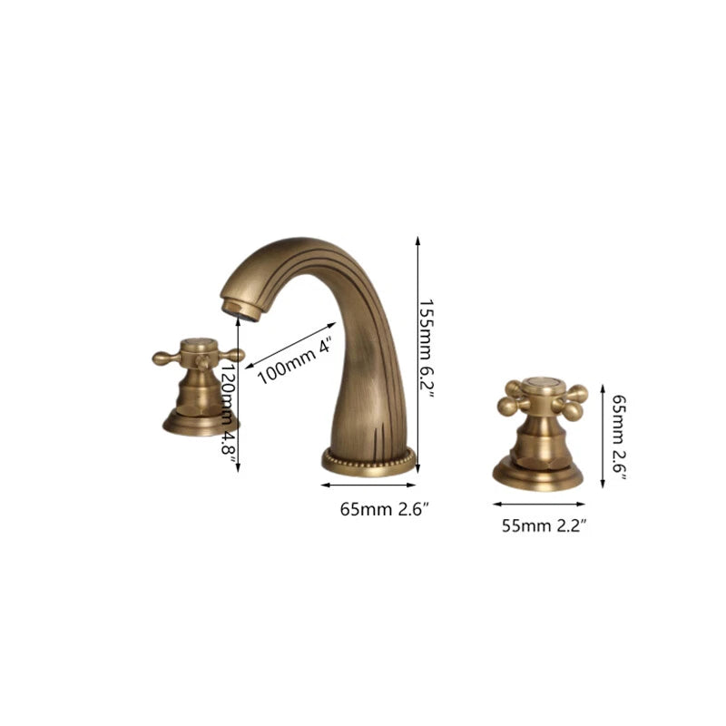 Bring a touch of nostalgia to your bathroom with this elegant bronze bath faucet. Crafted from solid brass with an antique finish and ceramic discs for durable, smooth operation. Supplied as a complete 3-piece set with fittings. Versatile: suitable for mounting on the bath rim and as a stylish three-hole basin faucet. Includes a 12-month warranty.