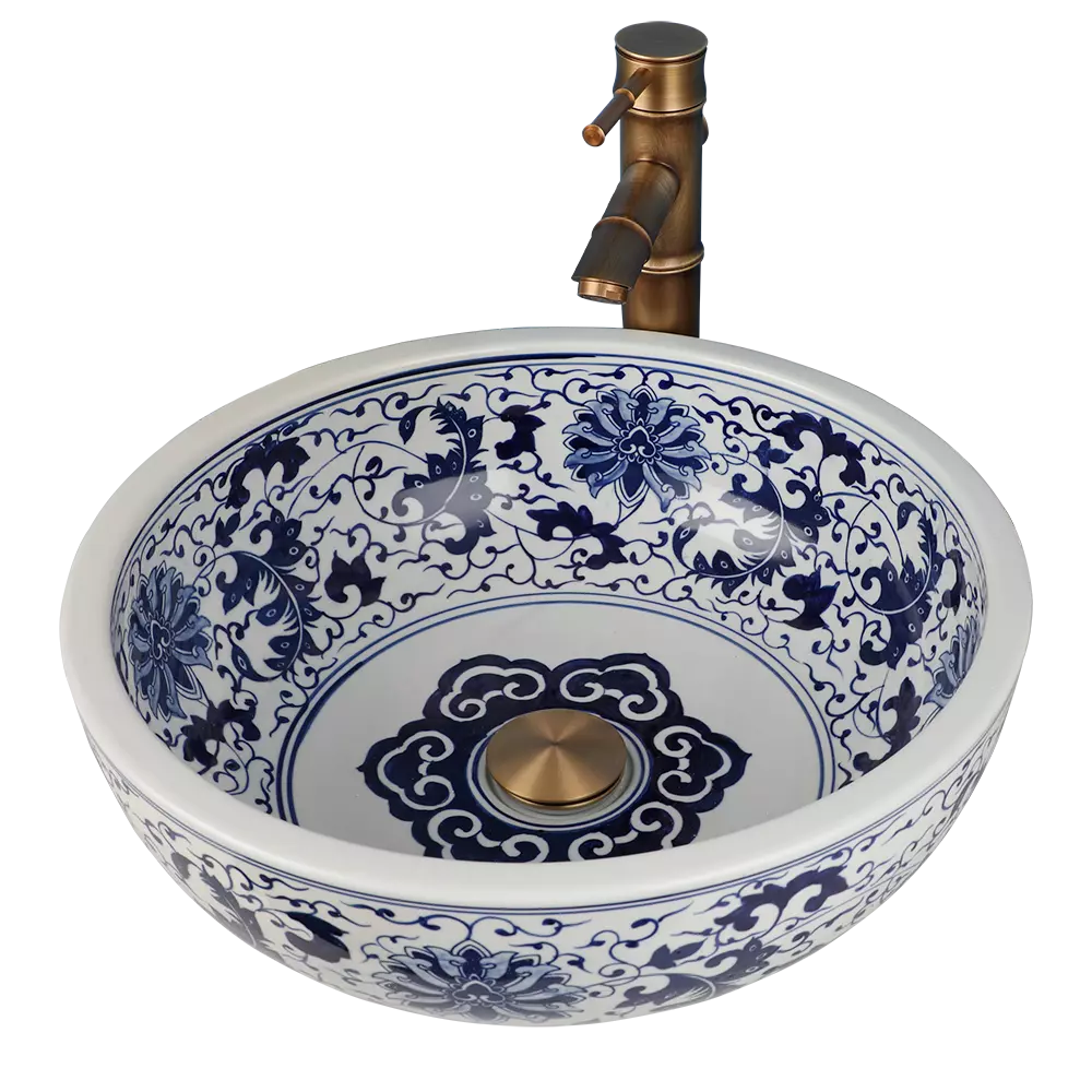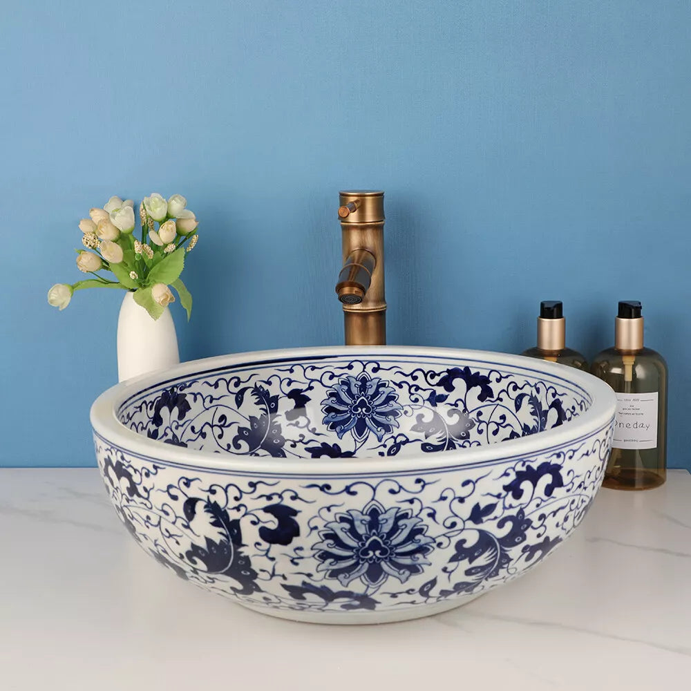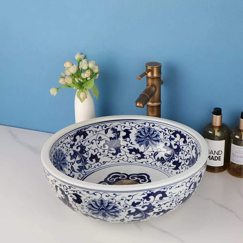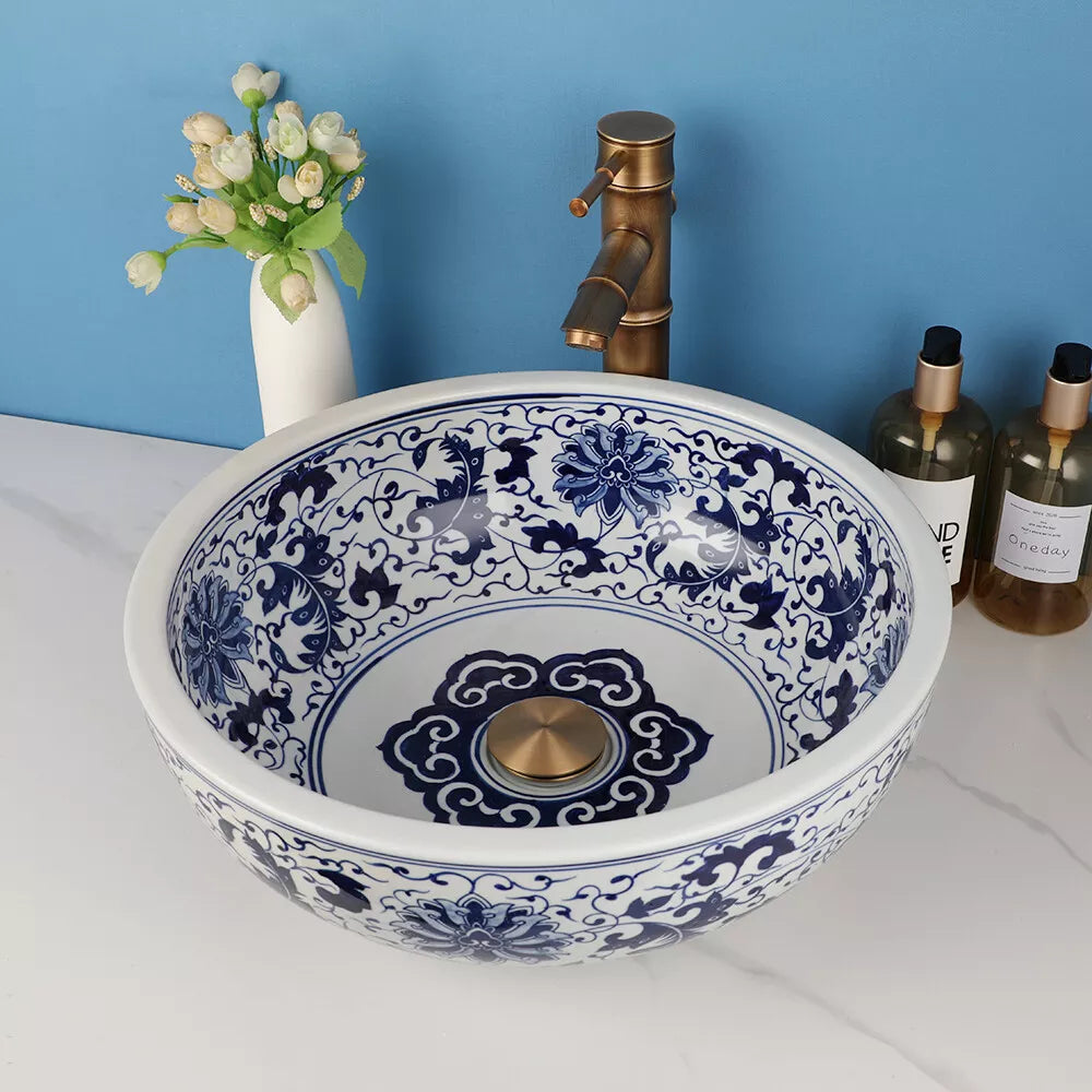 - Country Ceramic Washbasin with Bronze-Colored Tap