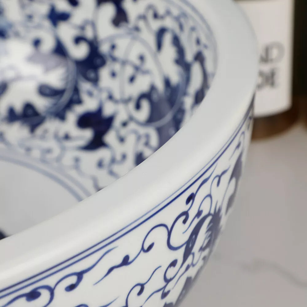Add charm and character to your bathroom or toilet with this rustic washbasin set. The hand-painted ceramic bowl with a blue floral motif and the bronze-colored tap with a brushed finish create a stylish eye-catcher.