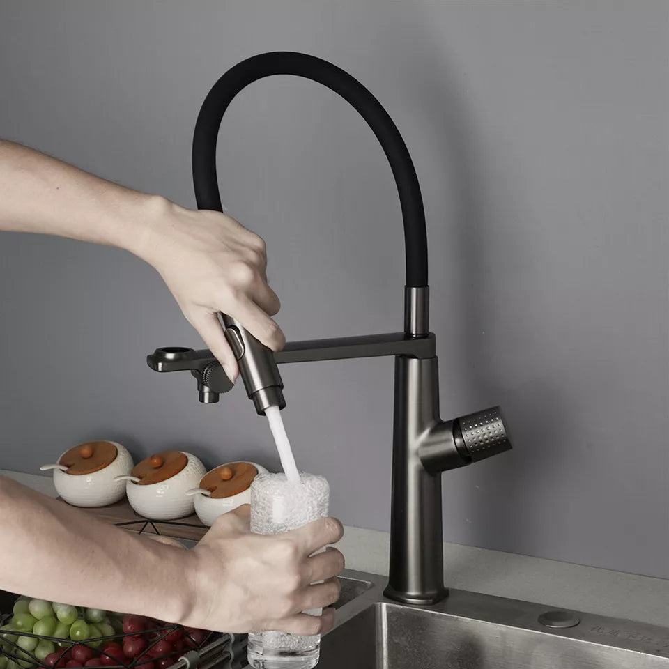 This faucet is a perfect choice for modern kitchens, offering a balance between aesthetics and ease of use. The adjustable spray head and swivel spout make it a versatile and practical addition to your kitchen.