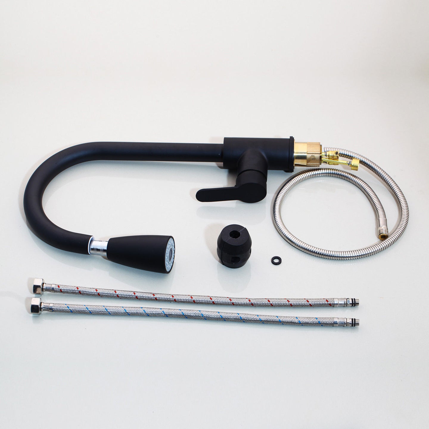 - This sleek kitchen faucet comes with a 12-month warranty.
