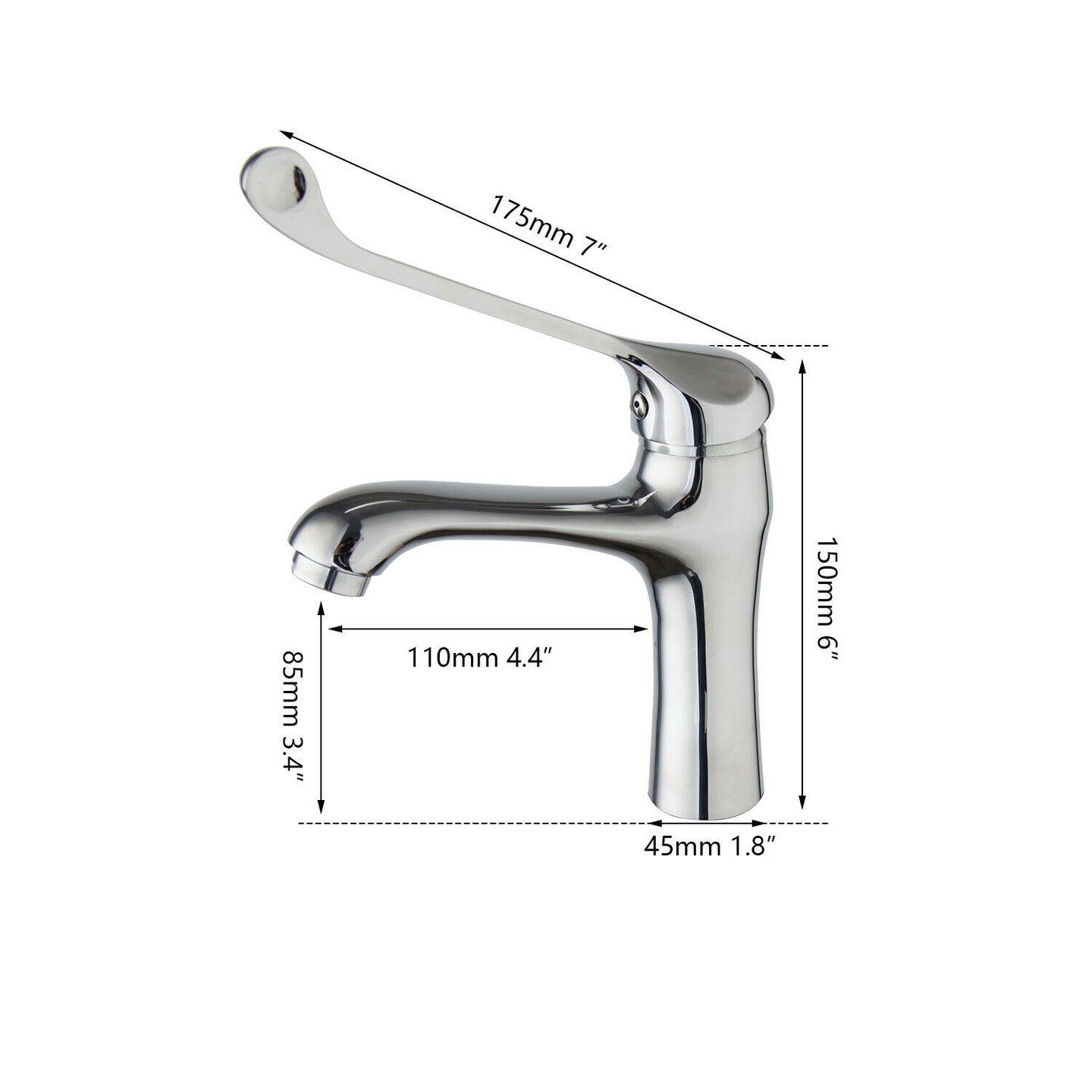 Chrome tap with an extra-long operating lever for hygienic use of the tap.