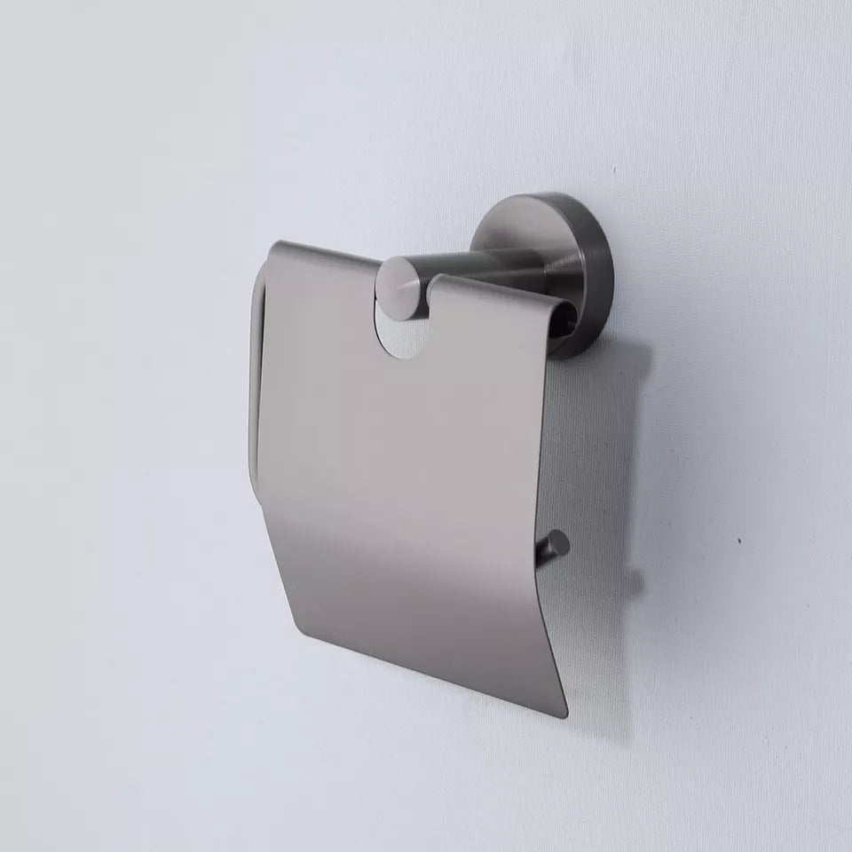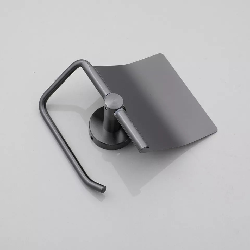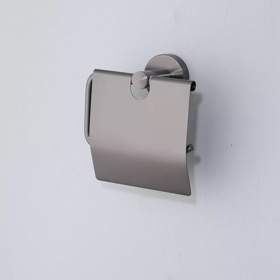 Modern stainless steel toilet roll holder with gun metal finish