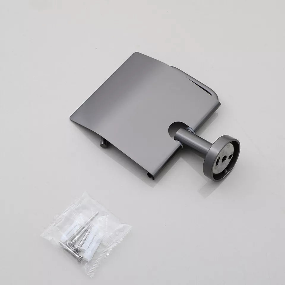 - Modern stainless steel toilet roll holder with gun metal finish