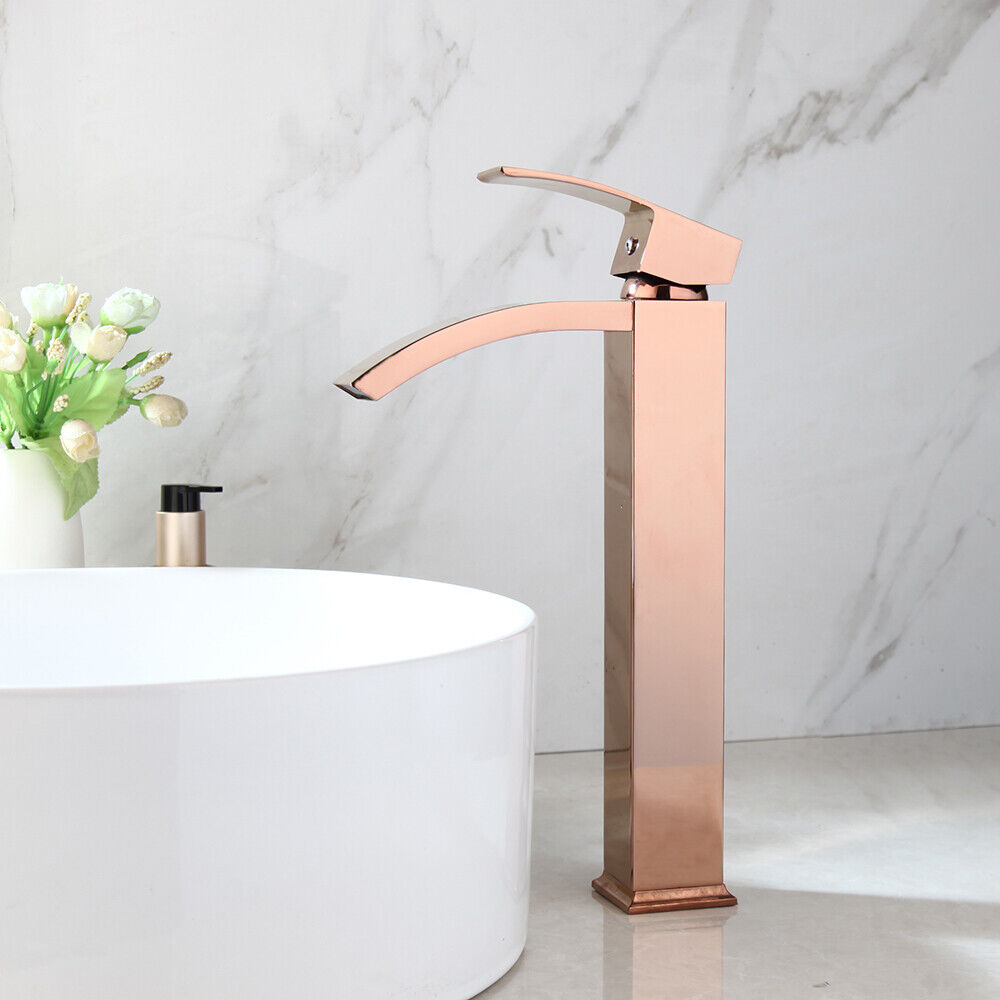 - This rose gold washbasin tap comes with a 12-month warranty.