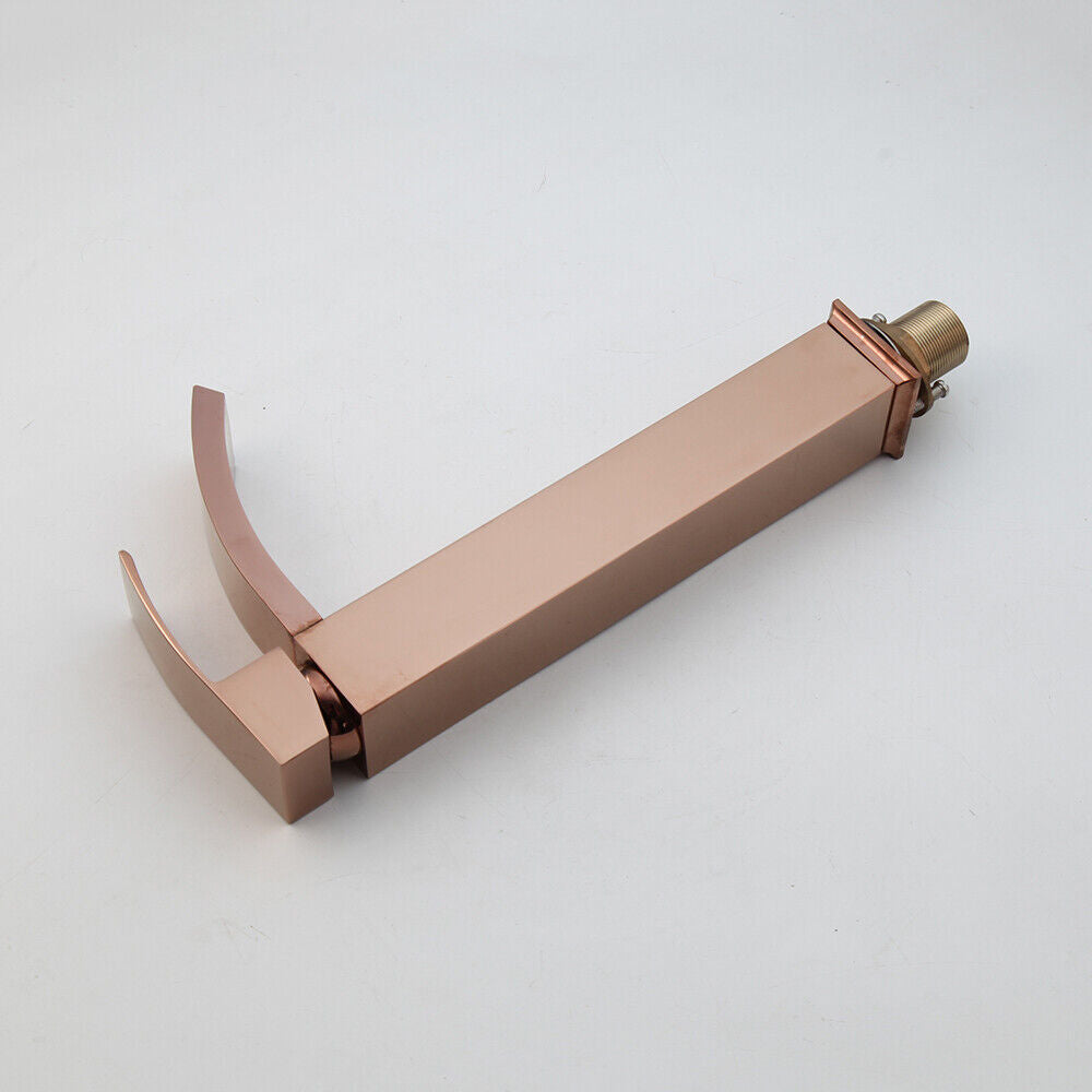 This washbasin tap is carefully crafted from solid brass and finished with a sleek rose gold finish.