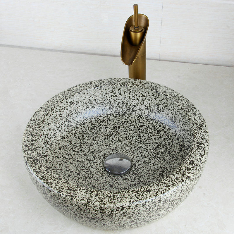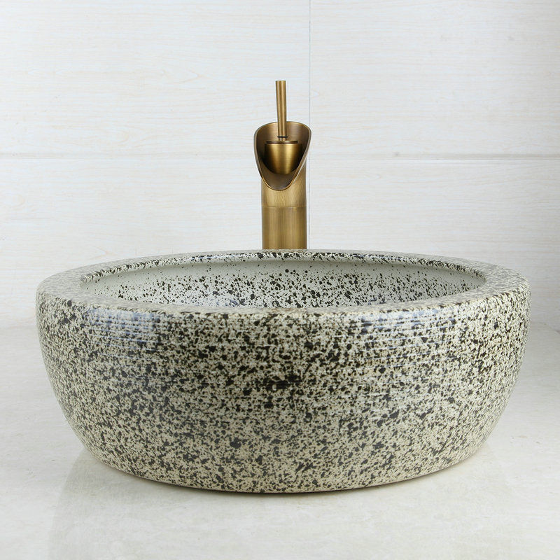 - Nostalgic bronze-colored washbasin tap with ceramic washbasin