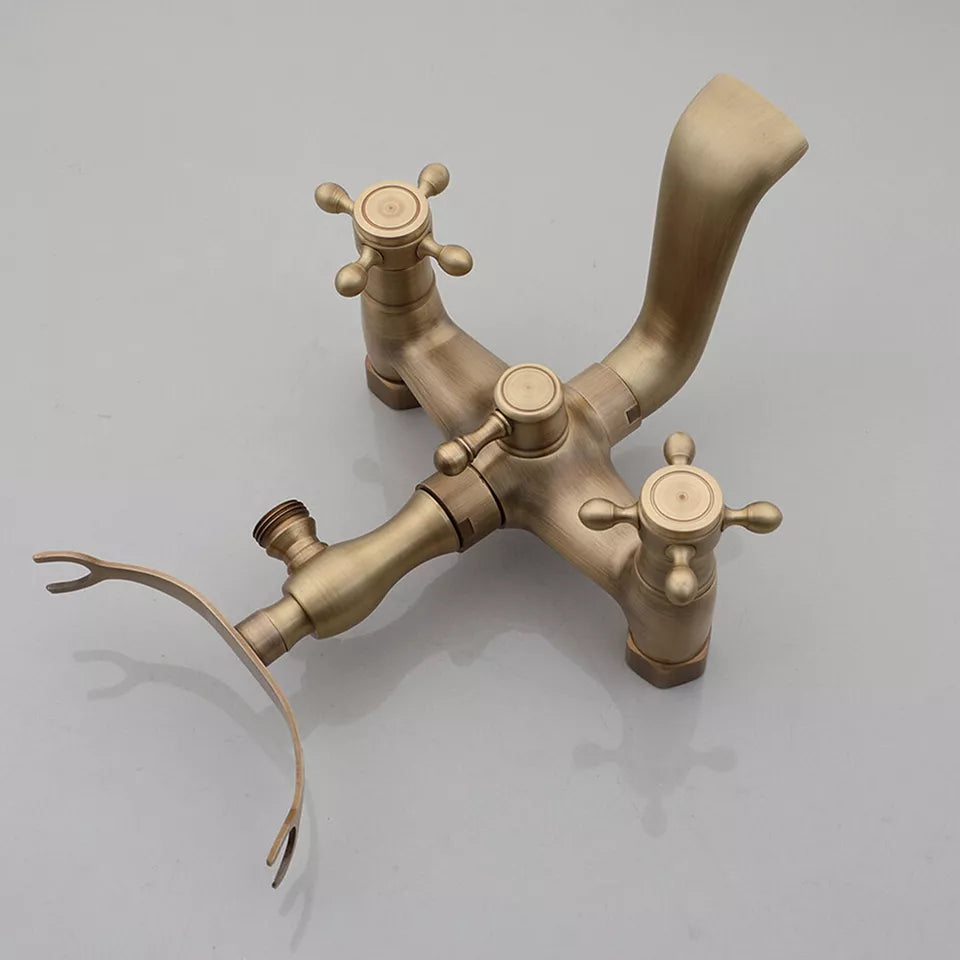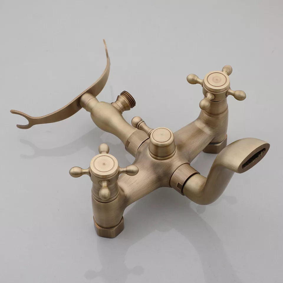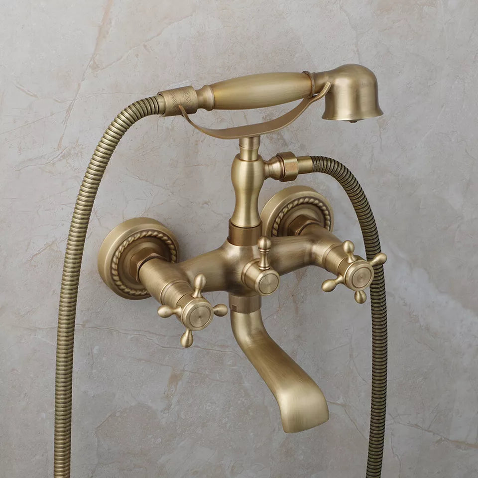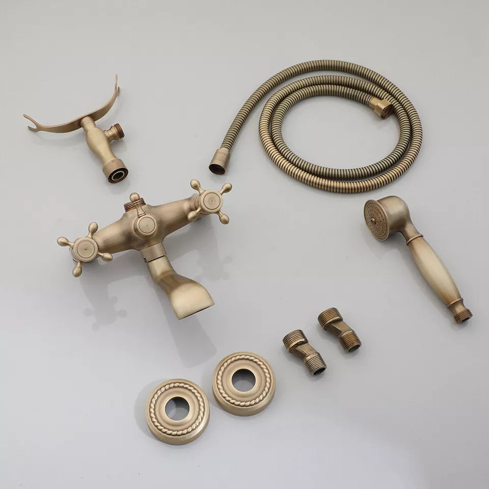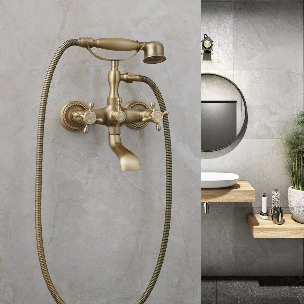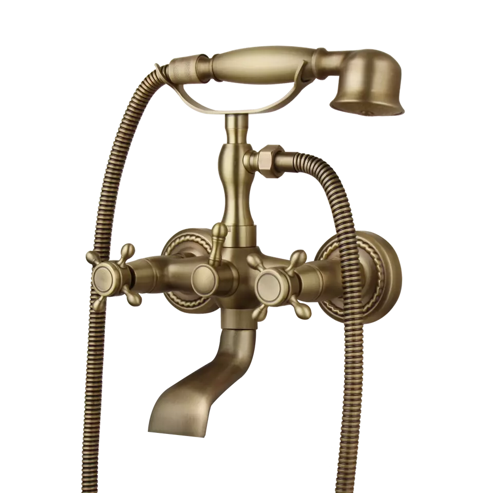 Nostalgic Bronze Bath Faucet with "Telephone Look" Hand Shower – For Wall Mounting