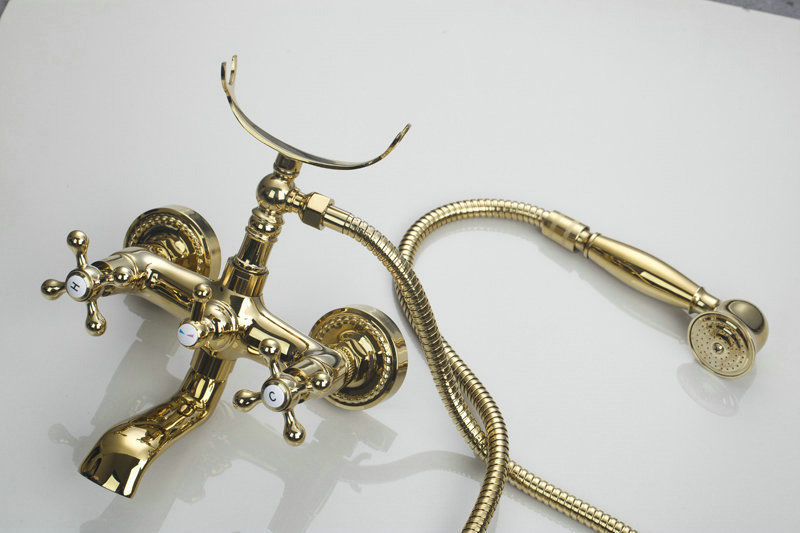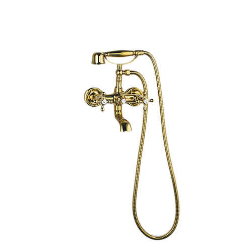 - The classic bath tap is supplied with connection accessories, including a telephone hand shower.