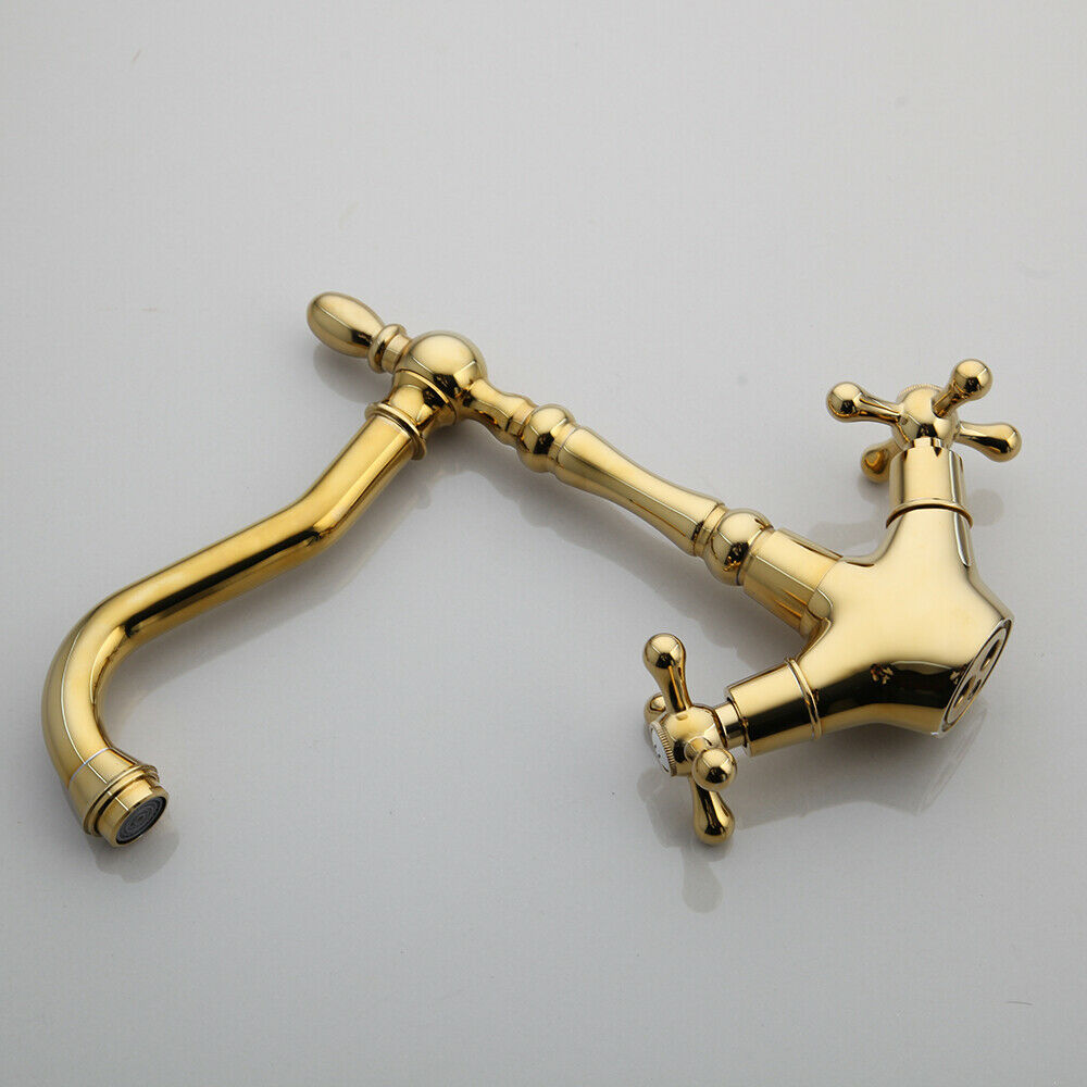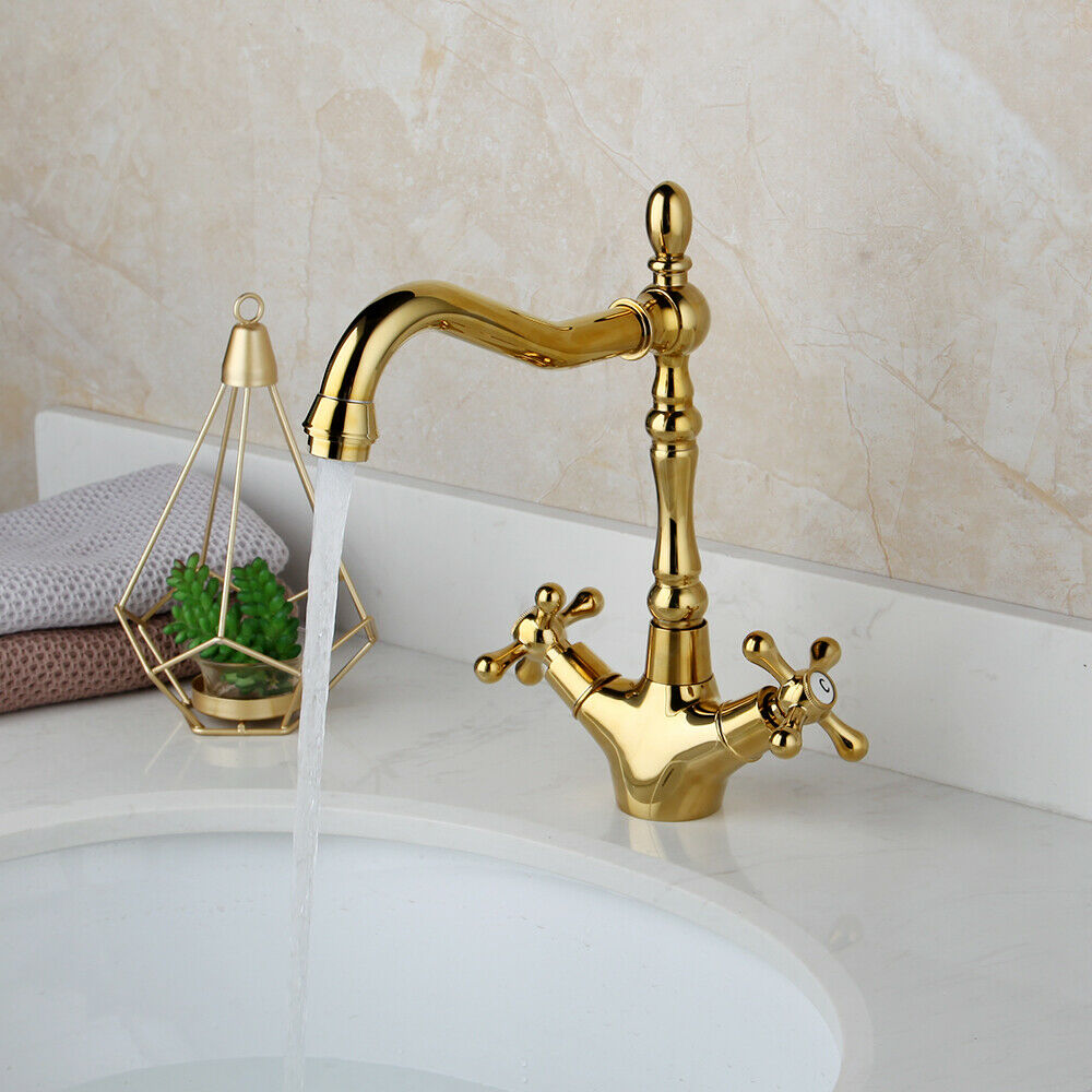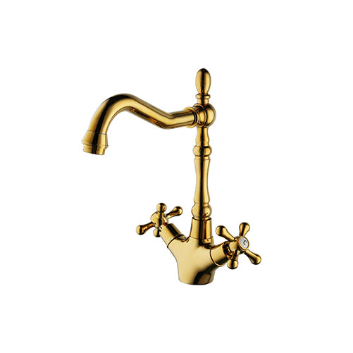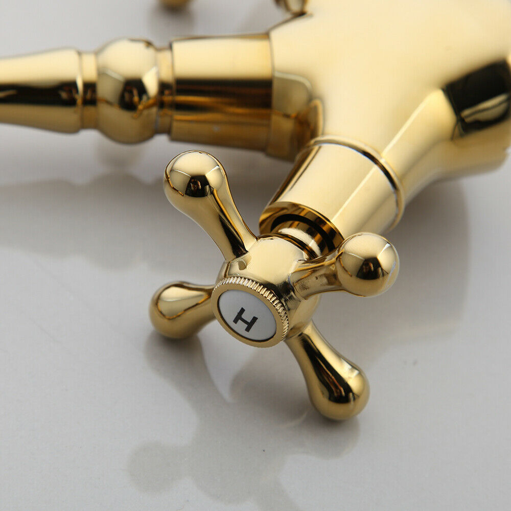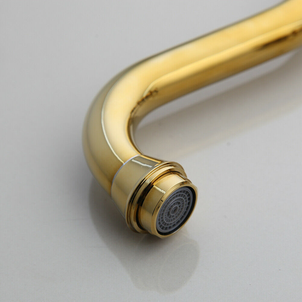 Mixer tap for hot and cold with a stylish gold-colored appearance.