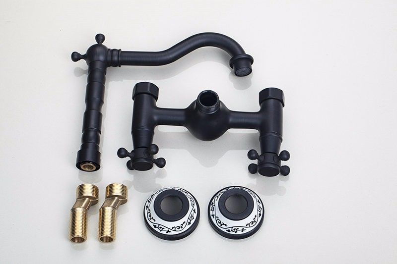 Nostalgic oil bronze bath tap wall mounted with white ceramic finish