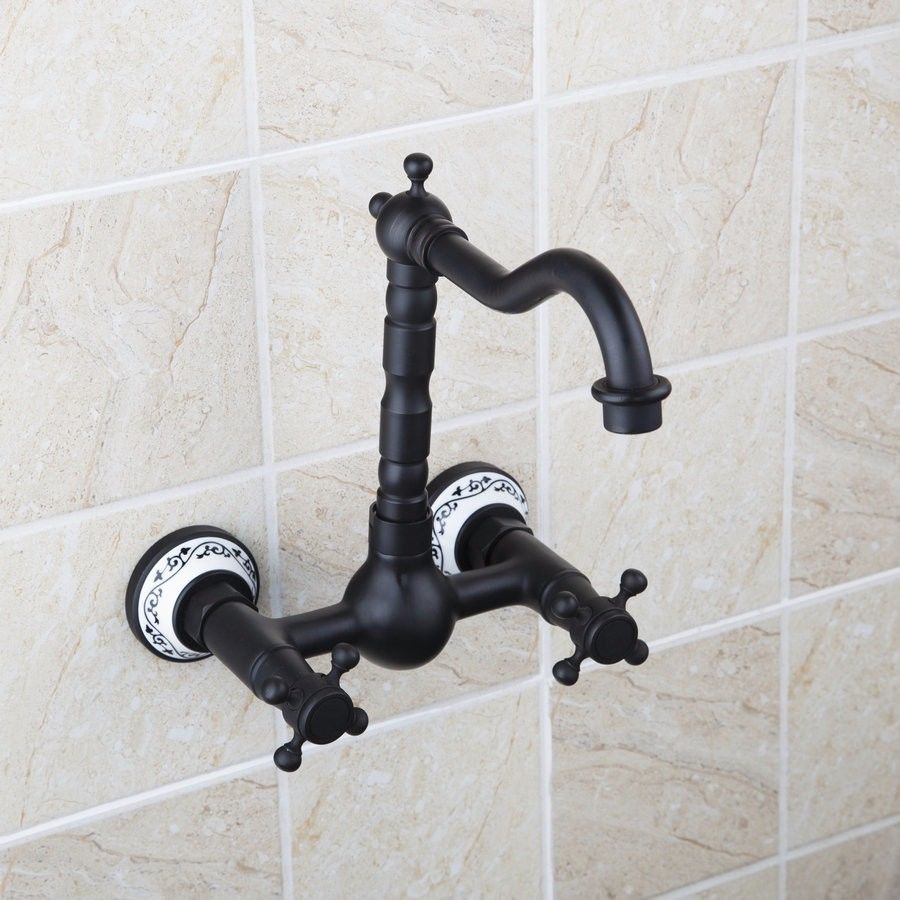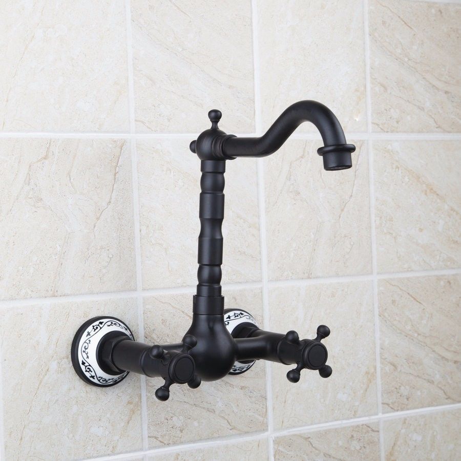 - Nostalgic oil bronze bath tap wall mounted with white ceramic finish