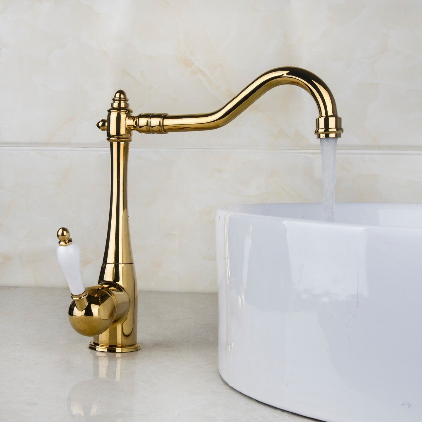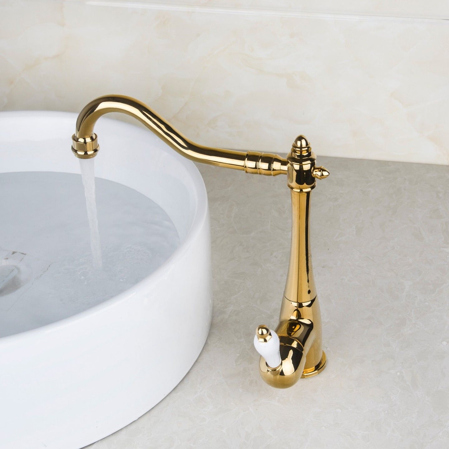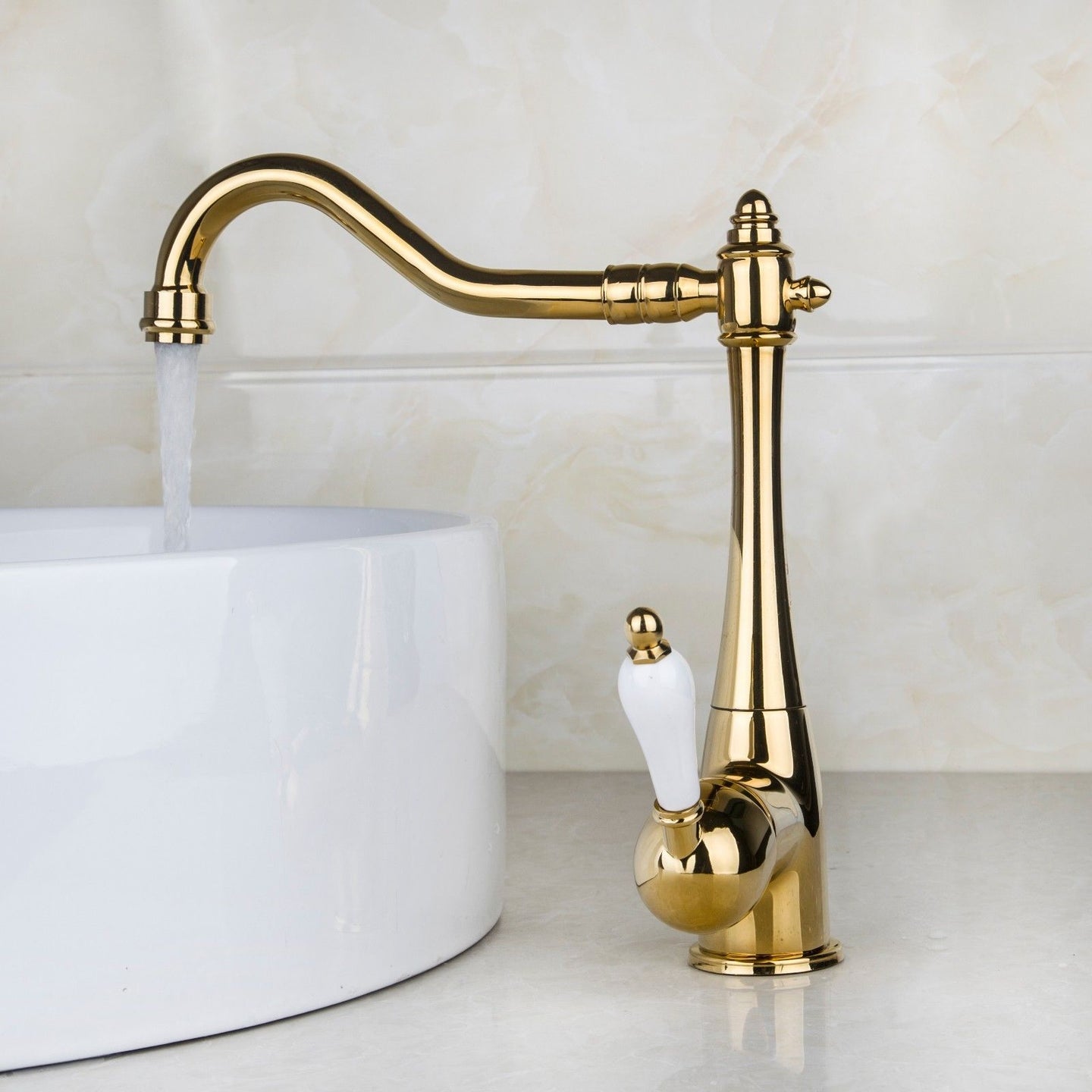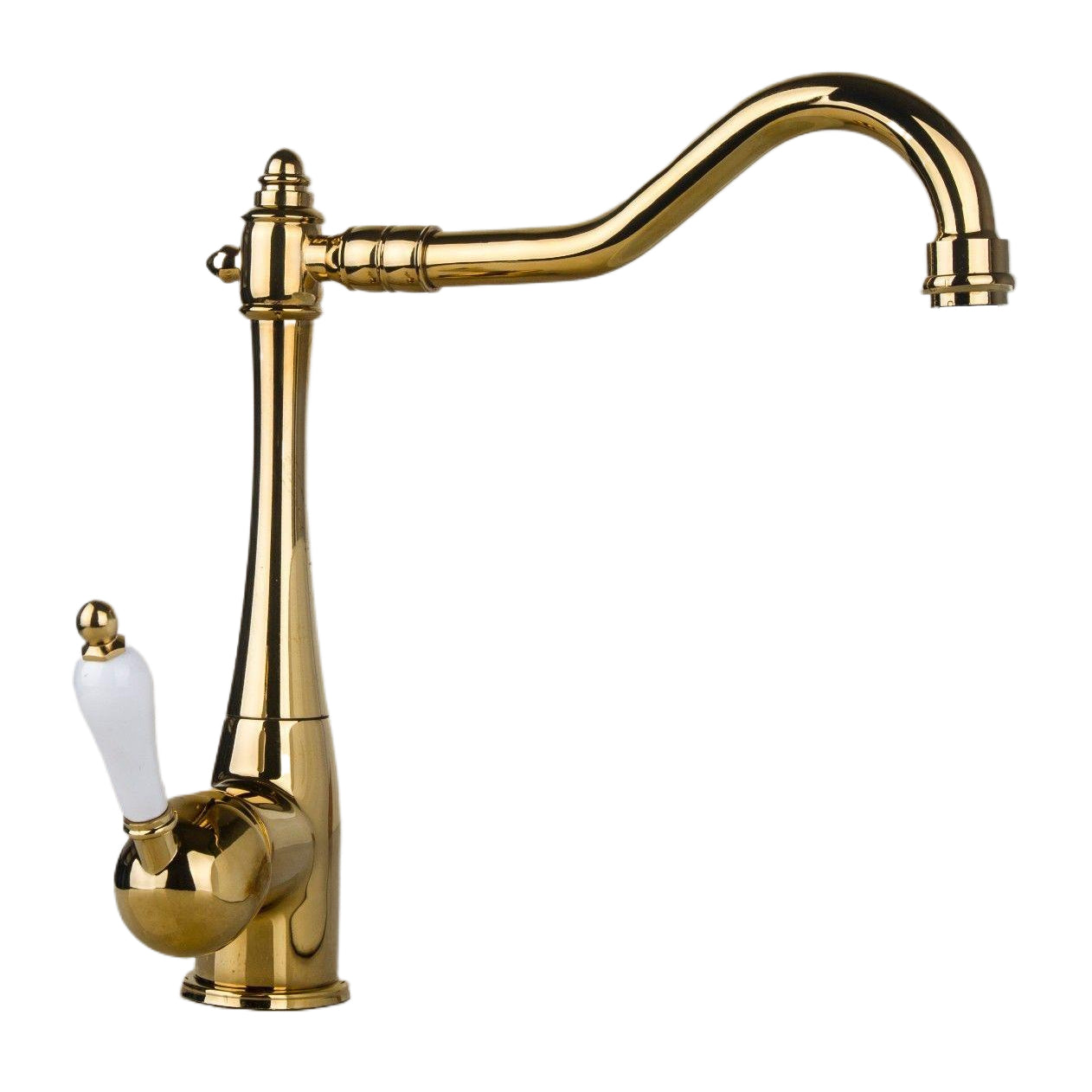 Elegant, nostalgic sink faucet or kitchen faucet with a gold finish: