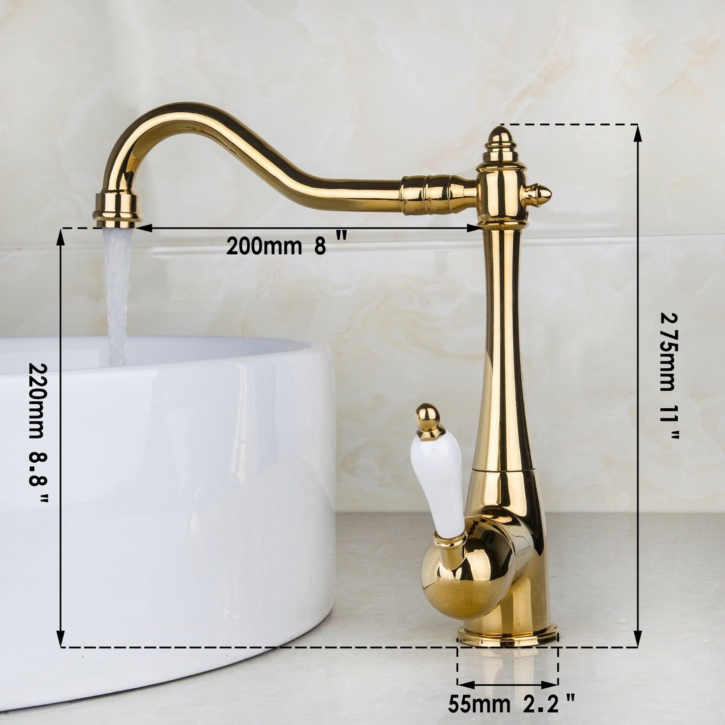 - Height of tap mouth: 220 MM