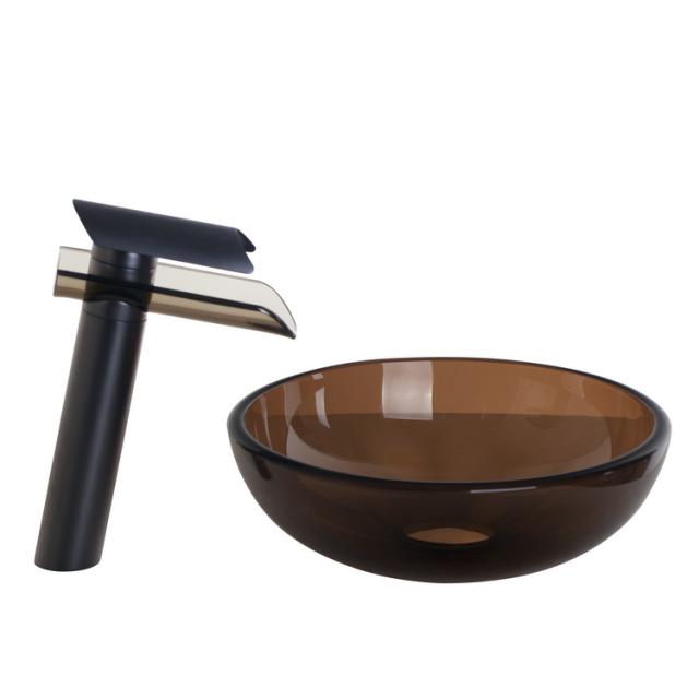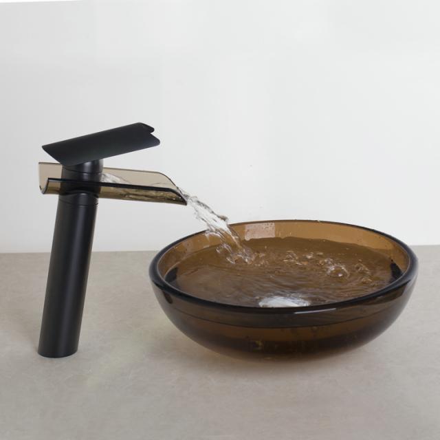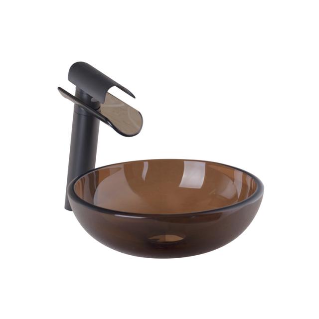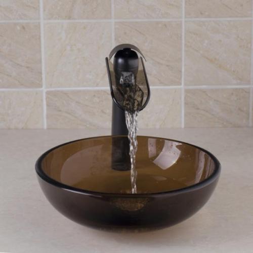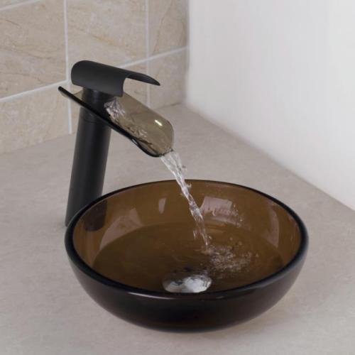 - Oil-plated bronze waterfall faucet with hand-painted glass basin