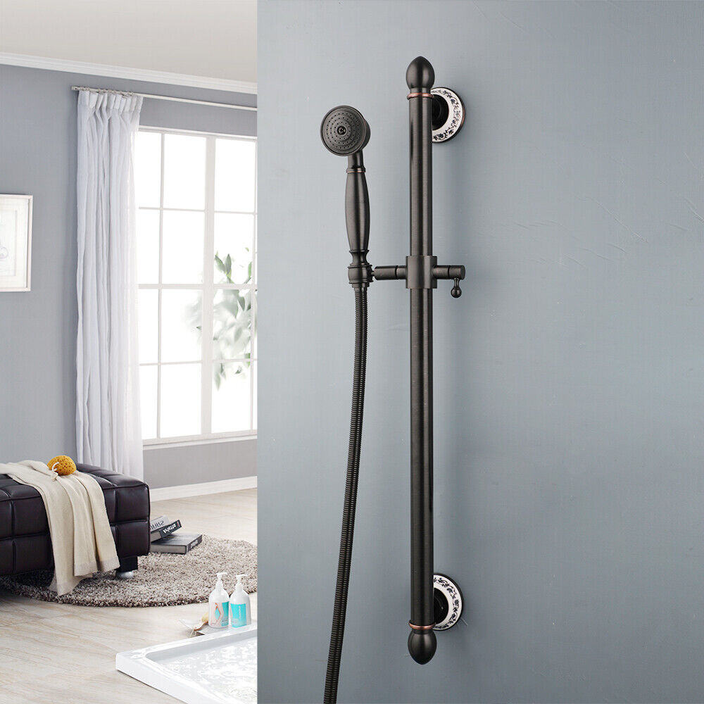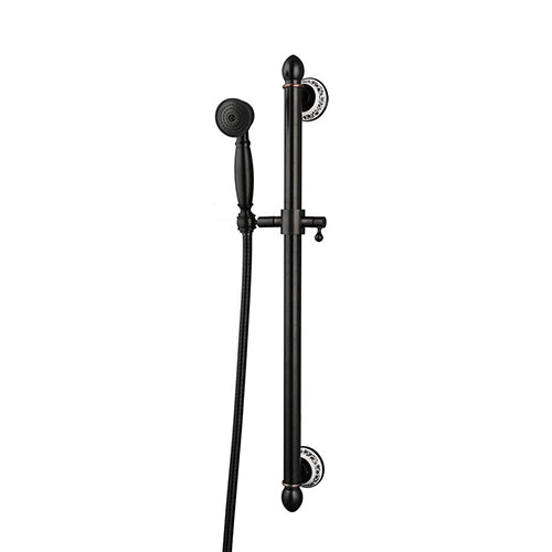 - 12-month warranty on the oil-bronze sliding bar with hand shower in country style.