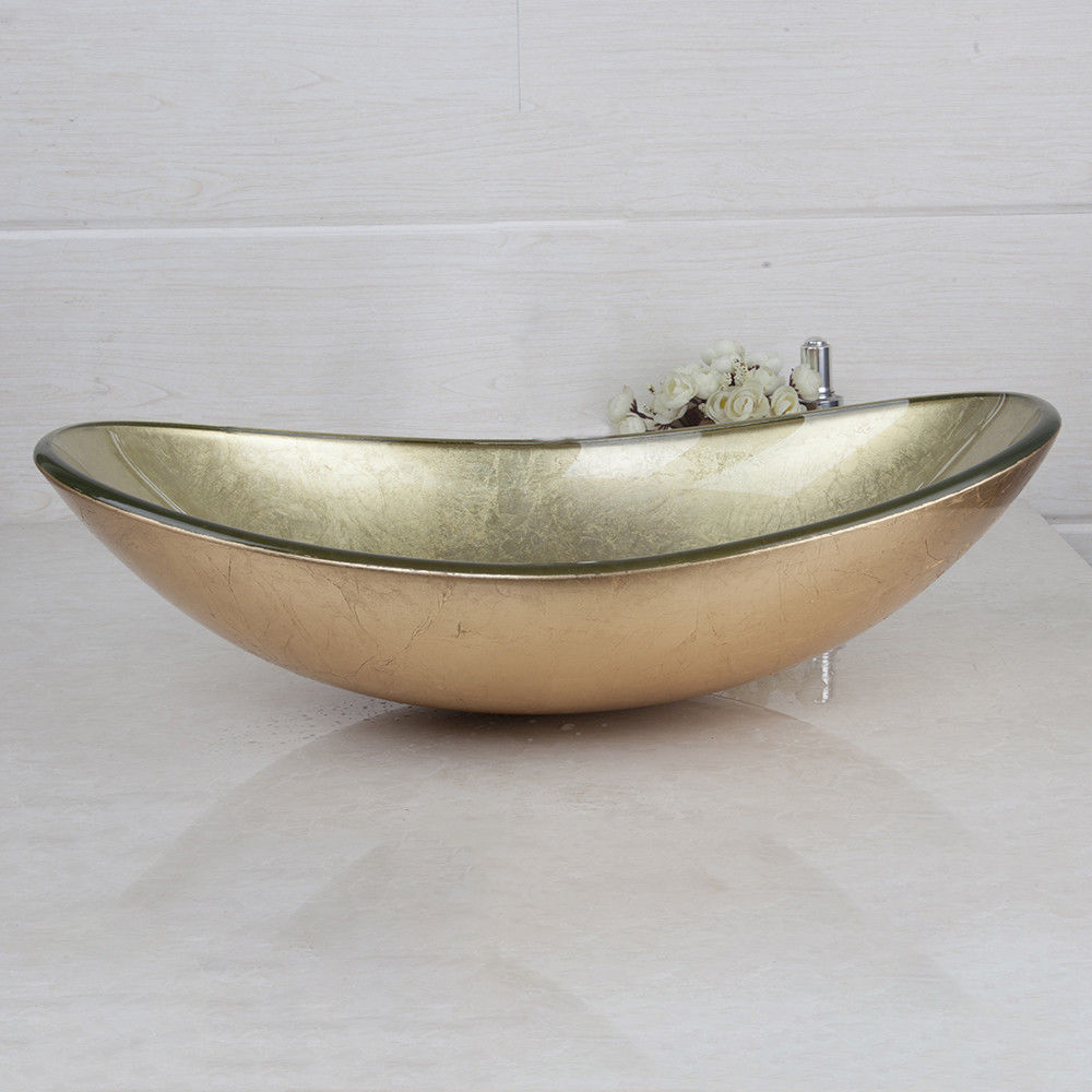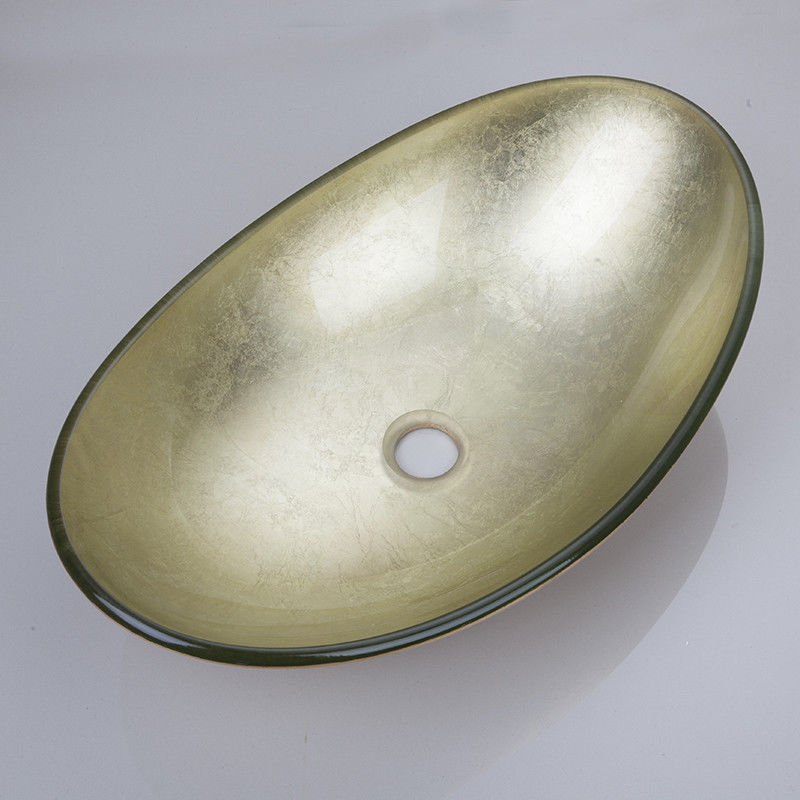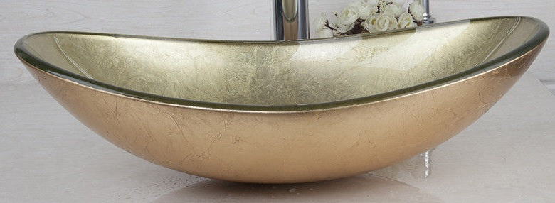 - Oval gold-colored glass countertop washbasin