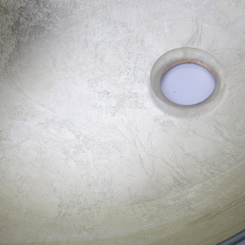 Oval gold-coloured glass washbasin, made of tempered glass.