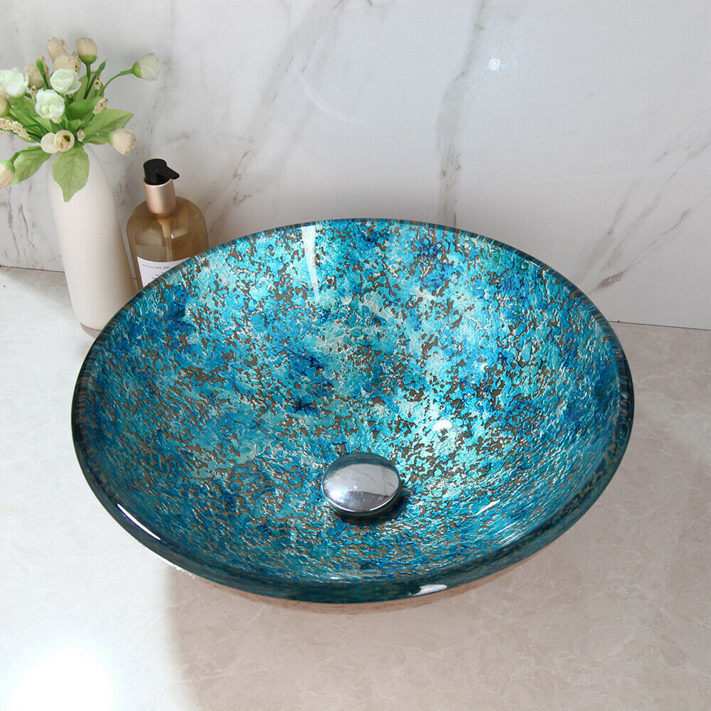 The glass wash basin is hand-painted and may therefore have a slightly different print than shown in the photos.