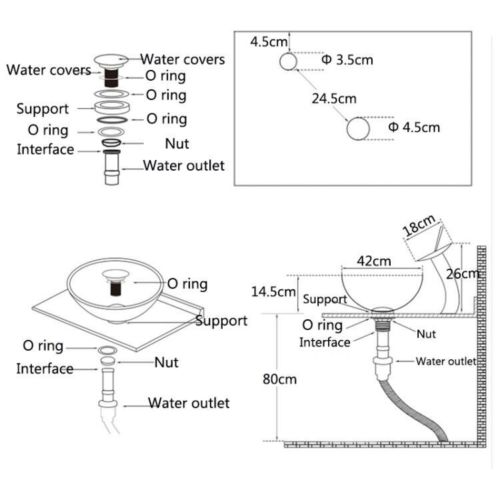 This is a complete set with the tempered glass wash basin, pop-up drain (chrome) and wash basin tap as shown.