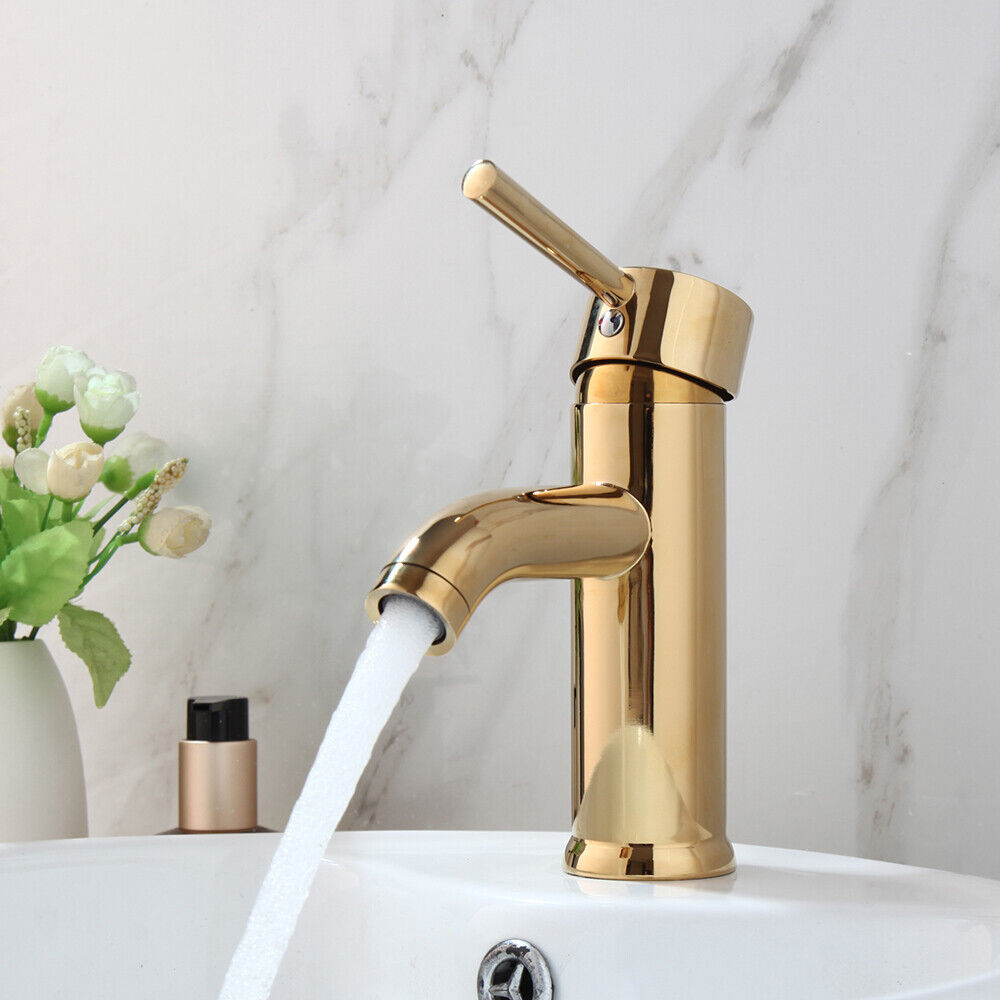 - This gold-colored washbasin tap comes with a 12-month warranty.