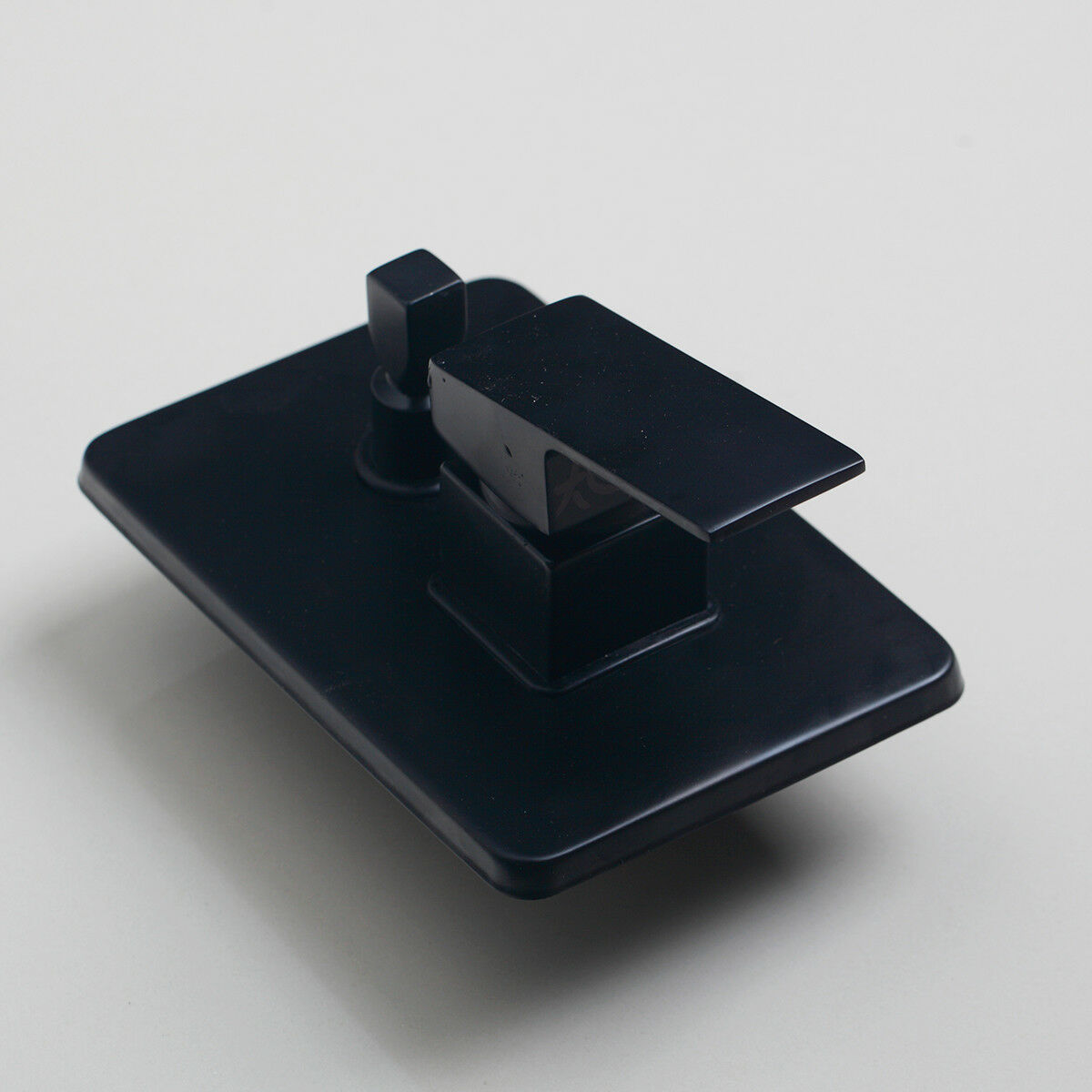 Black shower set with an elegant curved shower arm that you attach to the wall.
