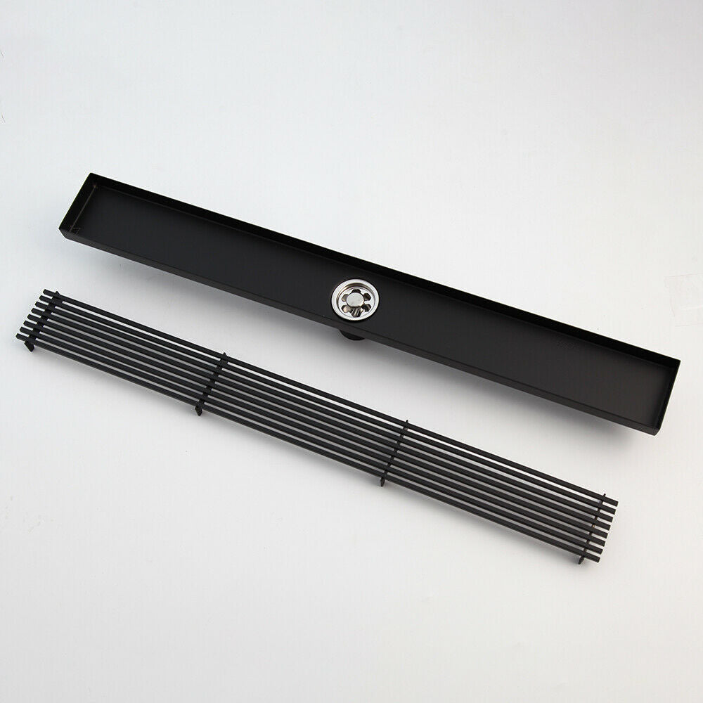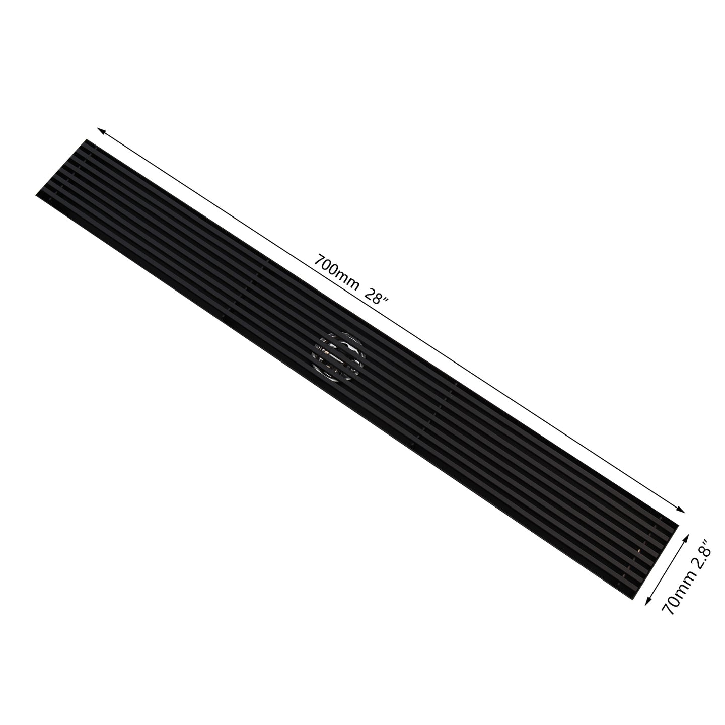 - Black Shower Drain 70 cm – Sleek Design with Bottom Outlet