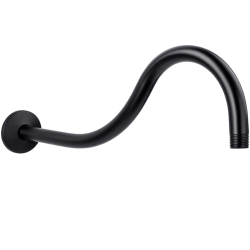 - Black curved shower arm with shower head