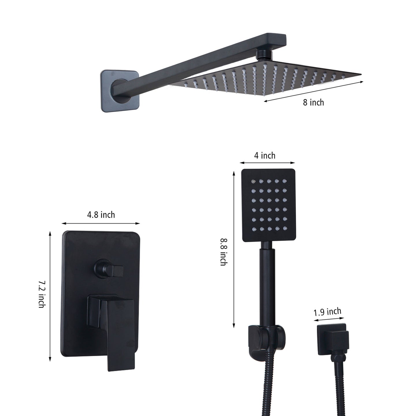 The specifications of the matt black built-in shower set: