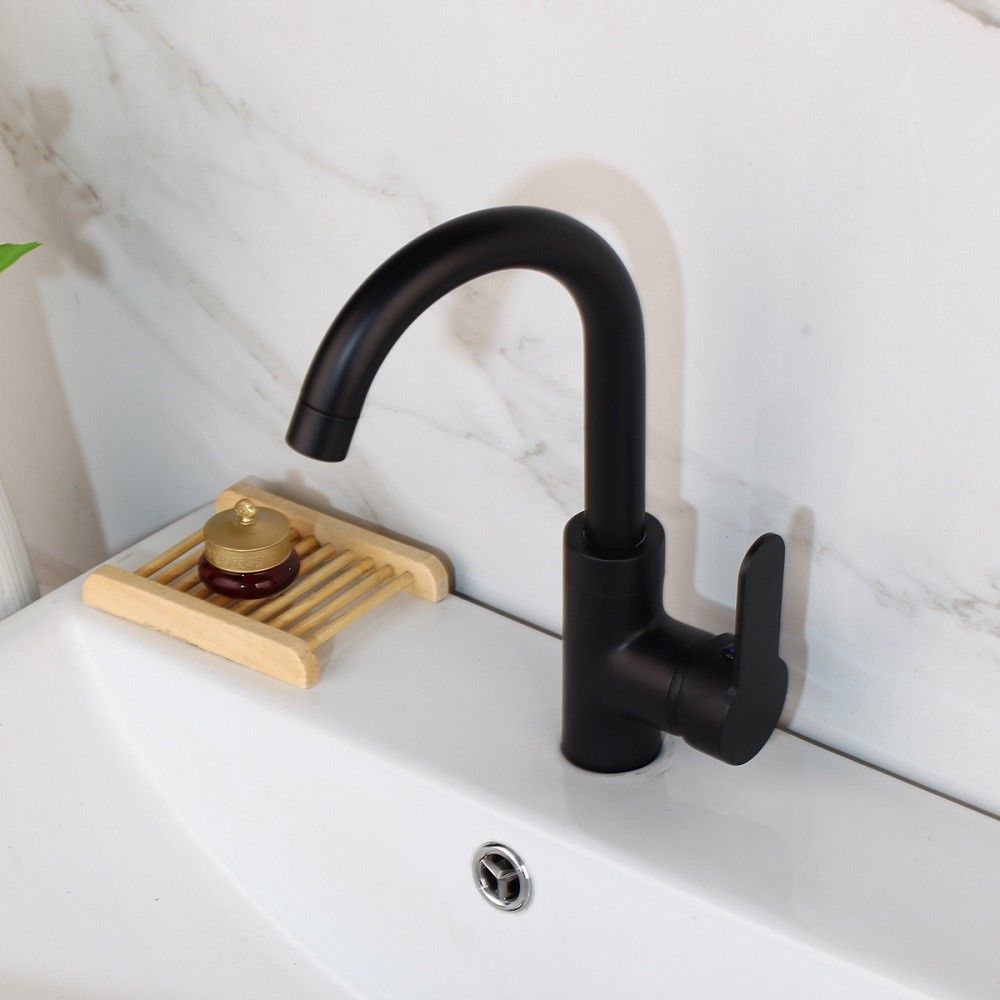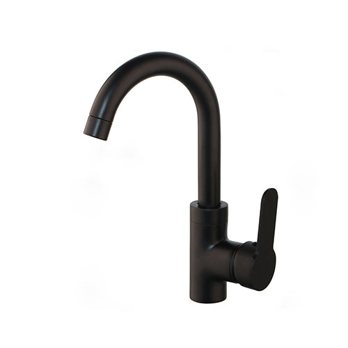 Black washbasin tap with a handy rotating neck.