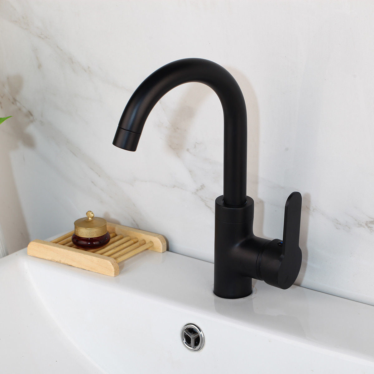 - The matt black washbasin tap comes with a 12-month warranty.