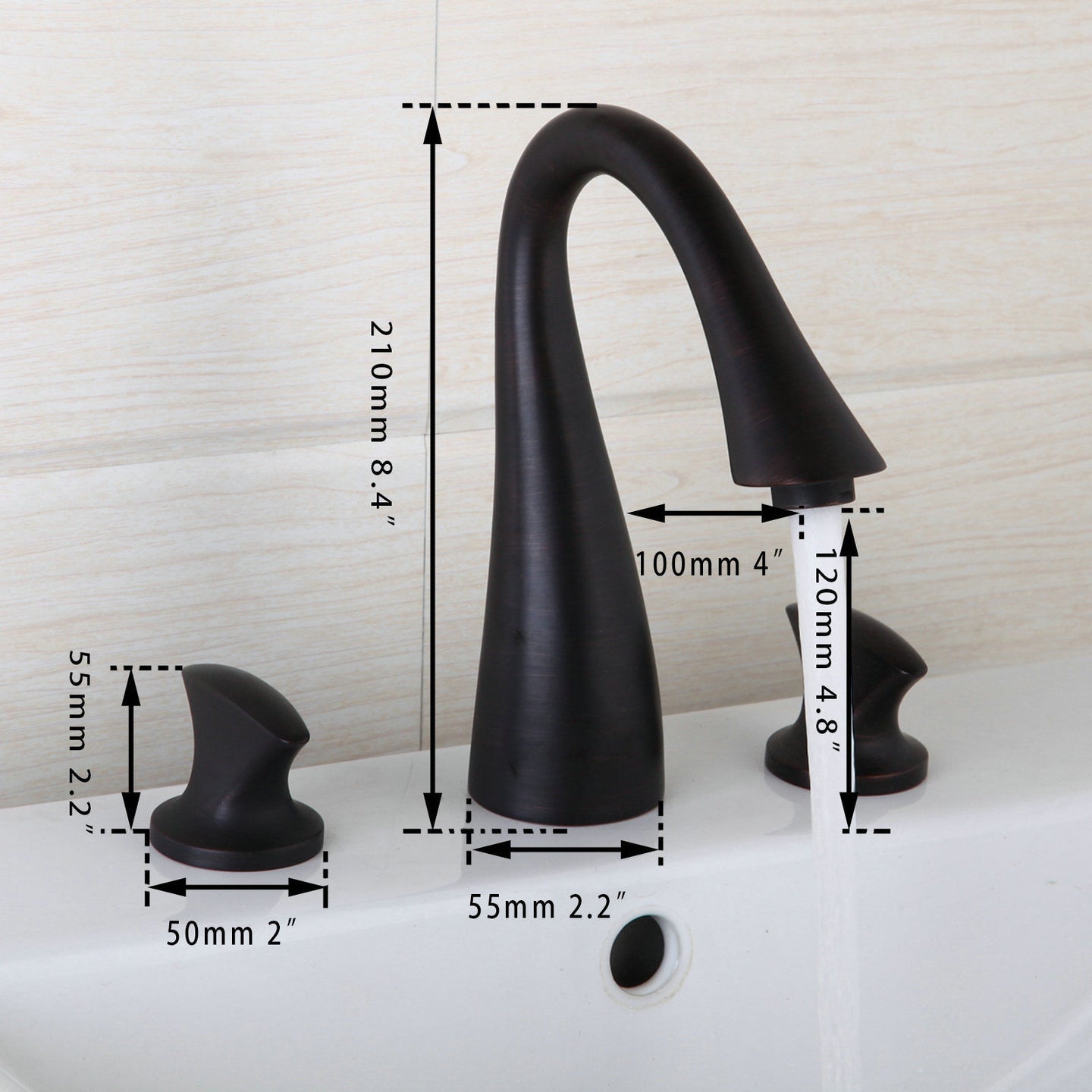 - Totale hoogte van de olie bronzen bedieningsknoppen: 55 MM