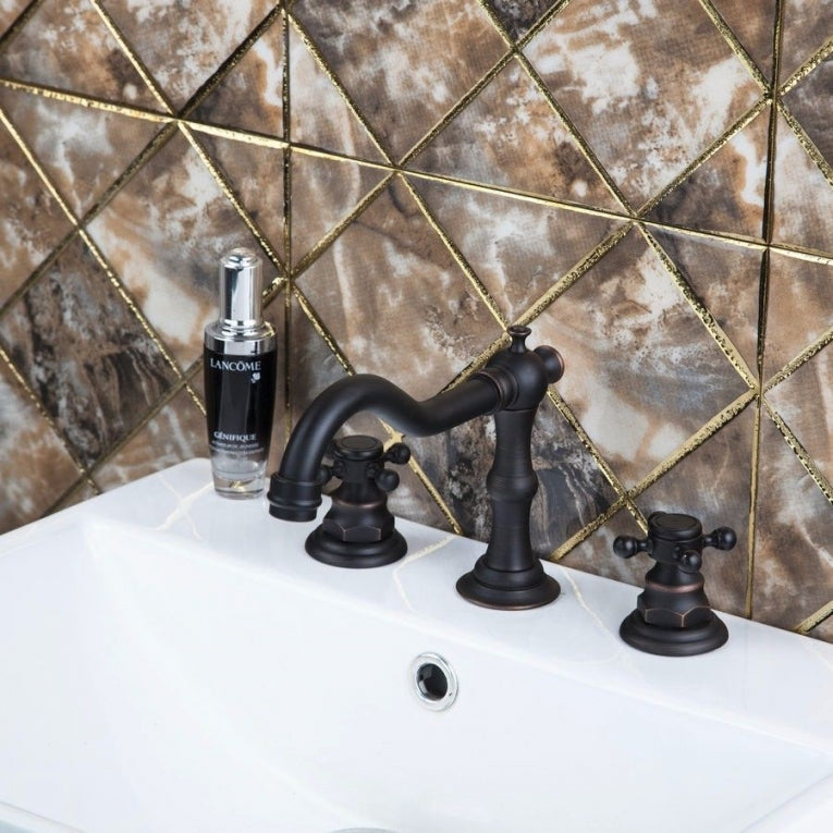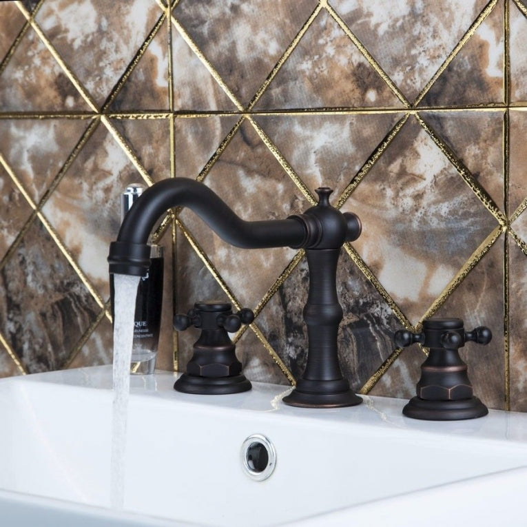 Mooie elegante stijlvolle Nostalgische 3 delige badkraan welke olie brons is afgewerkt: