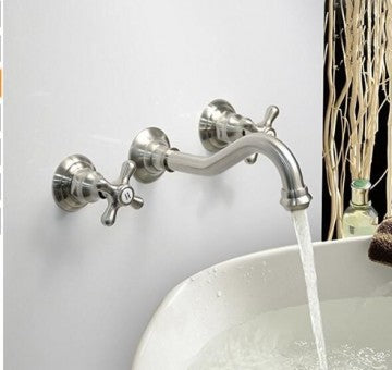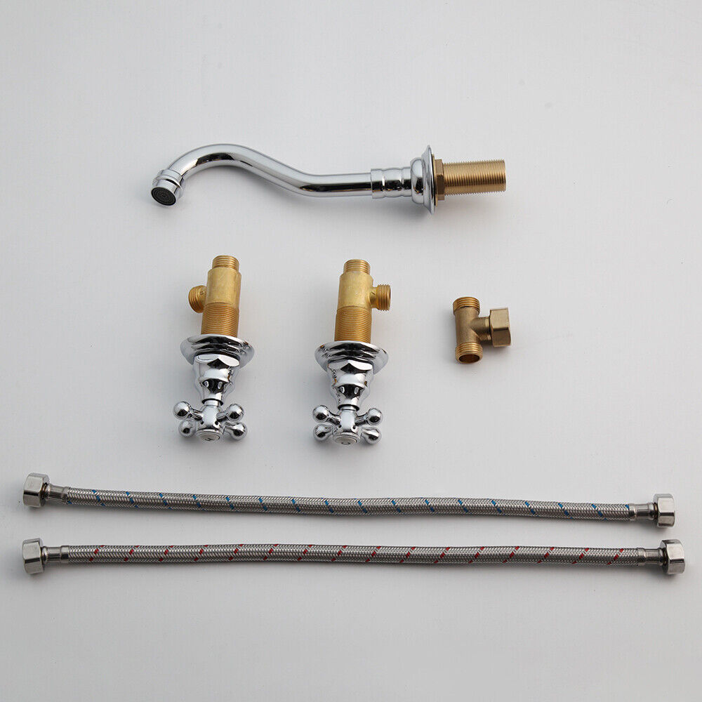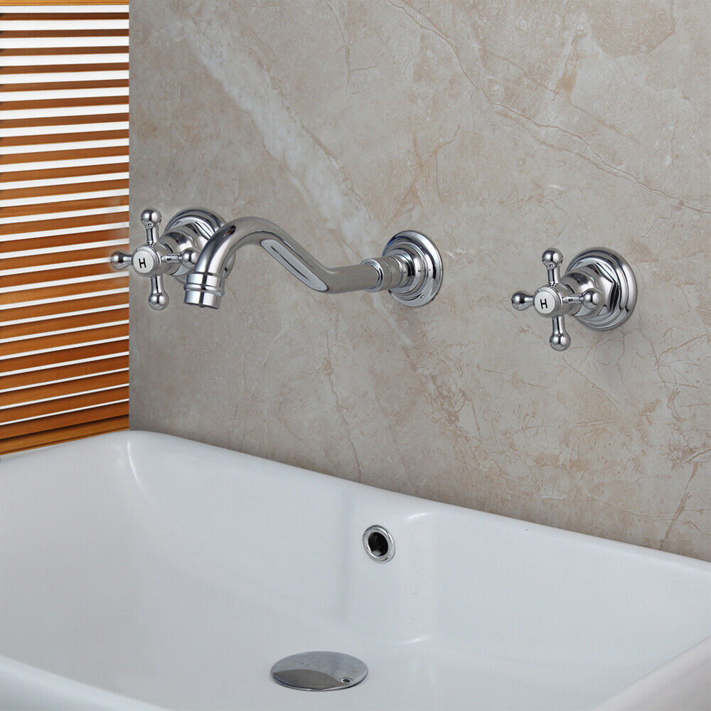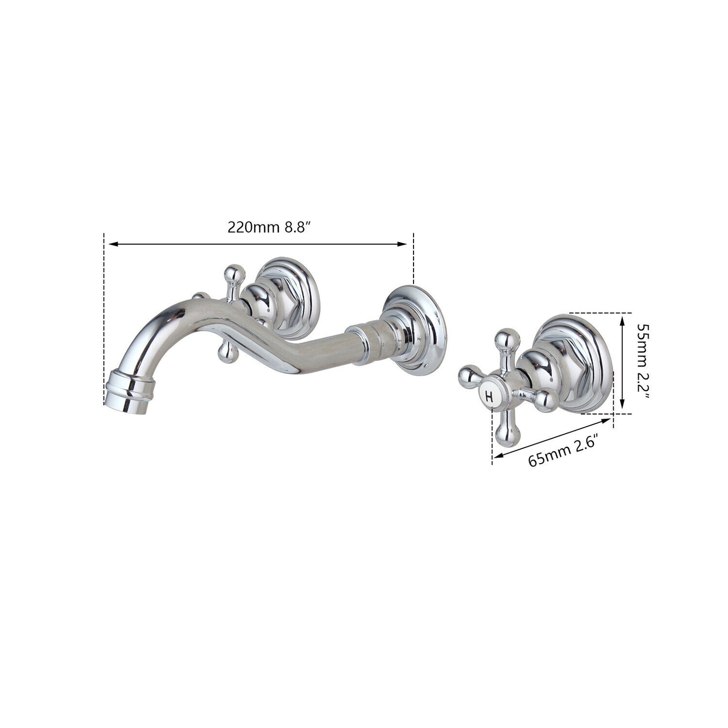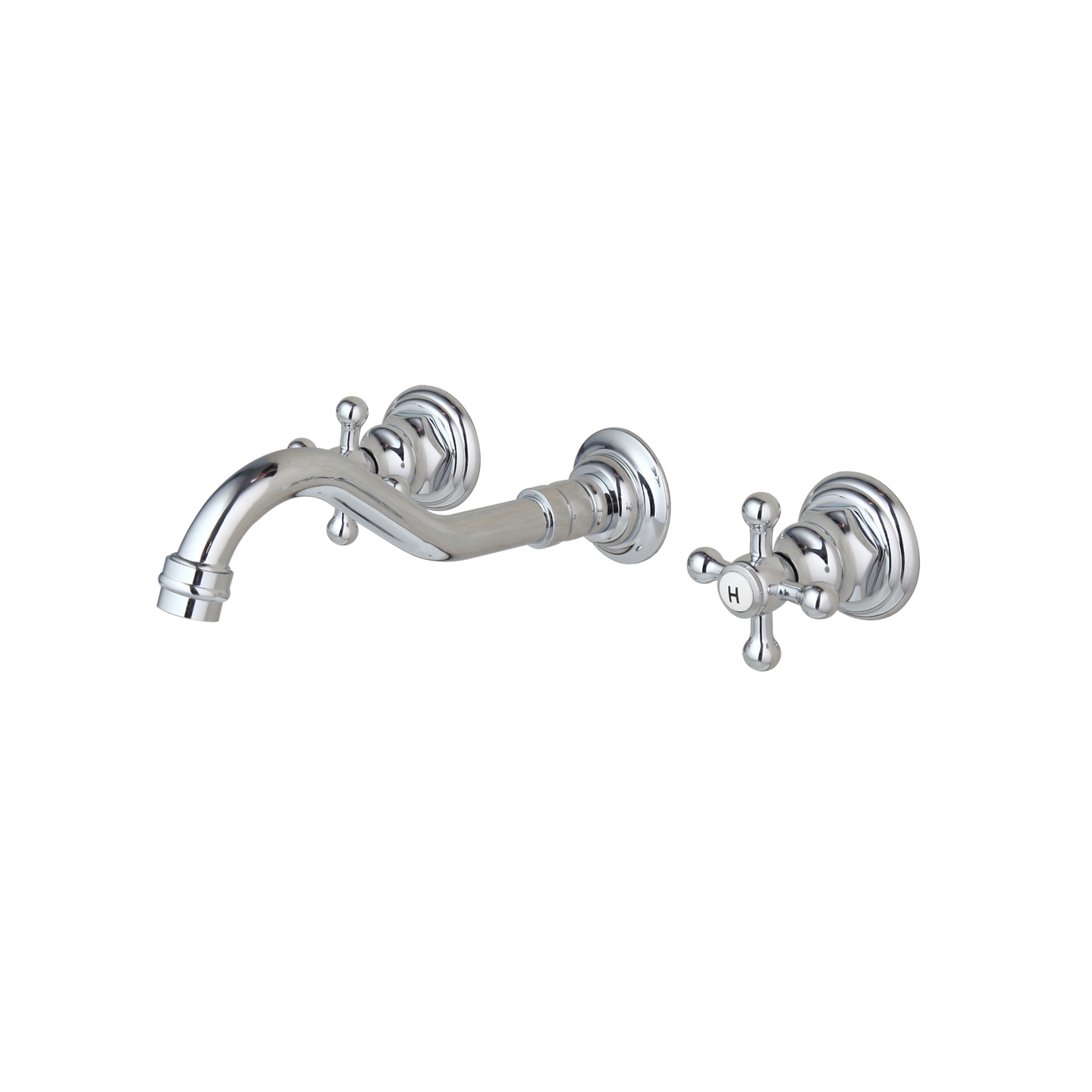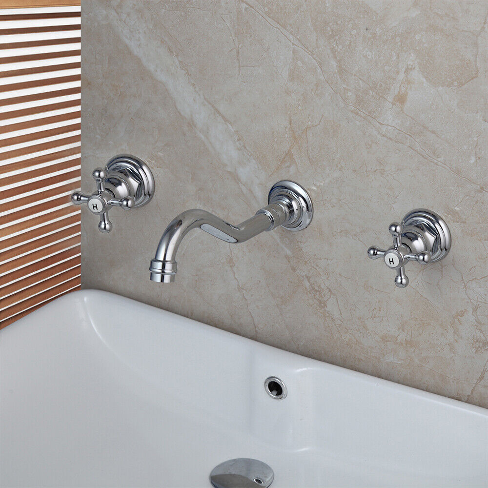 Geef uw badkamer een klassieke en elegante uitstraling met deze 3-delige wastafelkraan voor muurbevestiging. Vervaardigd uit massief messing en afgewerkt in hoogglanzend chroom, combineert deze kraan tijdloos design met hoogwaardige kwaliteit.