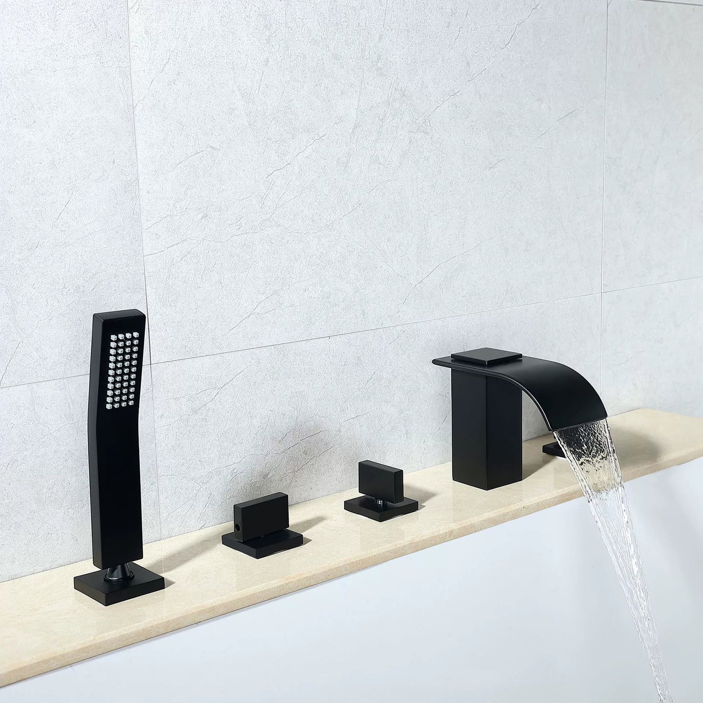 - 5-delige waterval badkraan – zwart