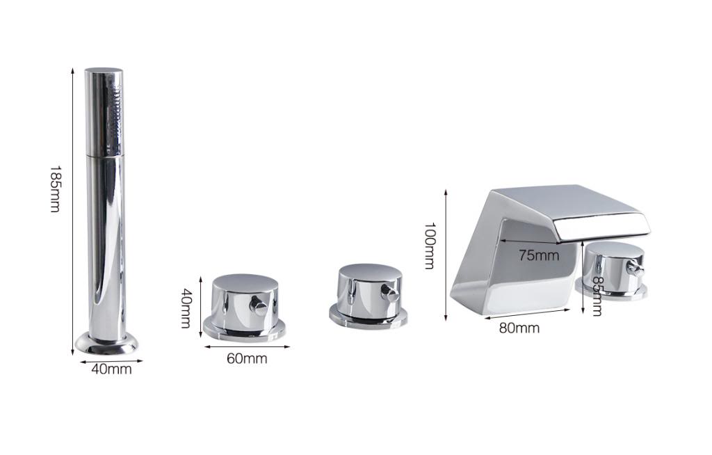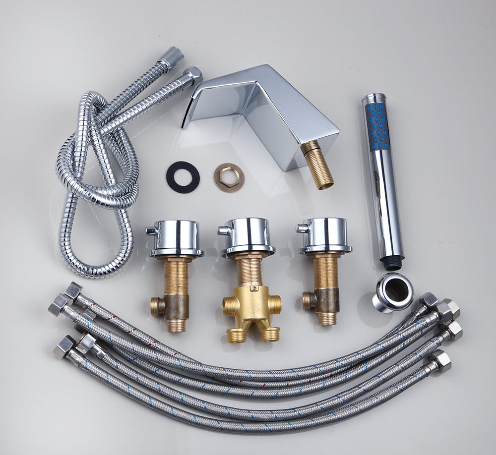 - De 5-delige badkraan wordt geleverd met aansluit toebehoren(inclusief handdouche en 1.5 meterlange doucheslang).