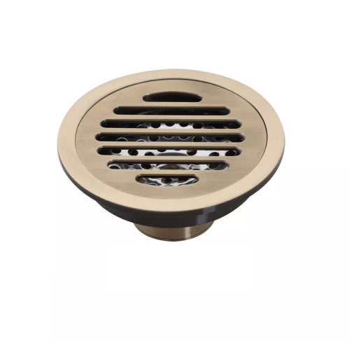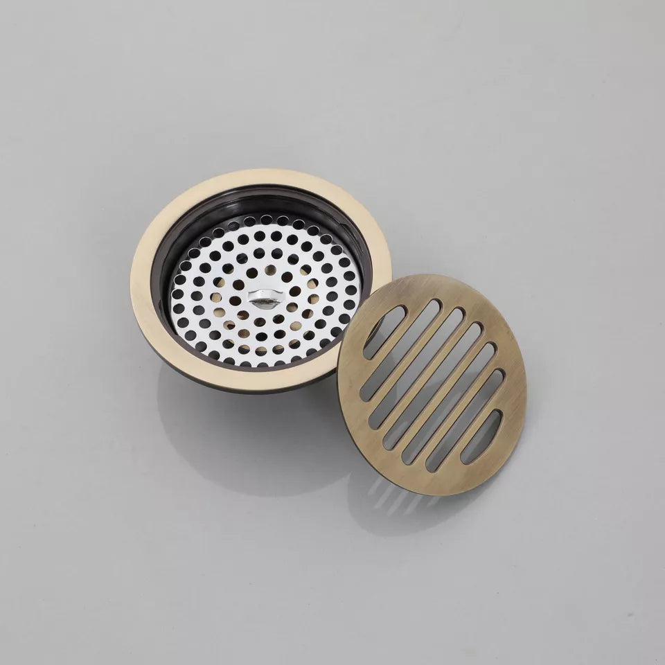 - Bronskleurige Landelijke Ronde Doucheput met Stankafsluiter