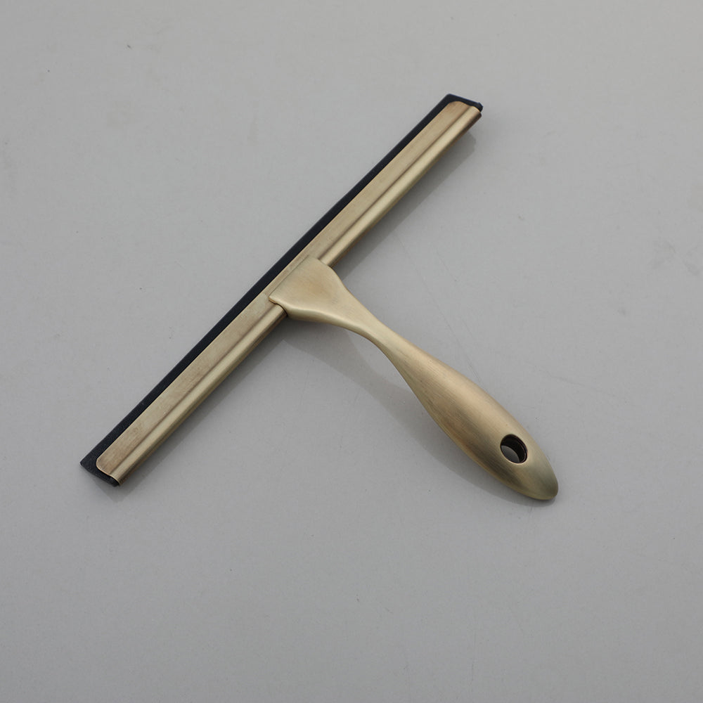 Deze stijlvolle raamwisser in bronskleur is ideaal voor het verwijderen van waterdruppels op douchewanden, ramen en tegels. Dankzij het elegante design past hij perfect in moderne en landelijke badkamers.
