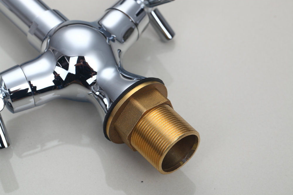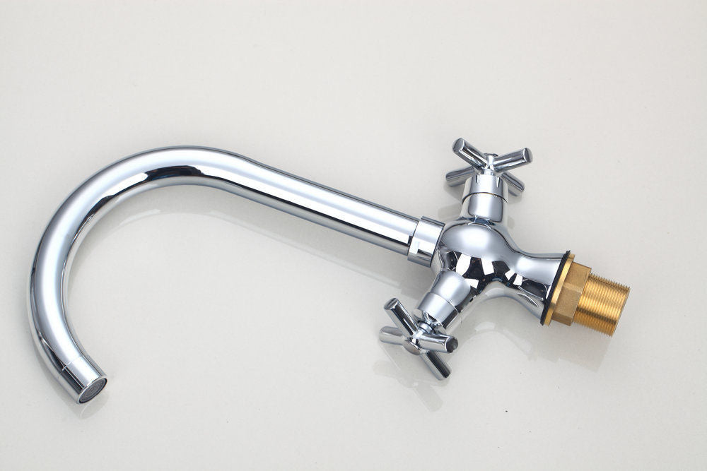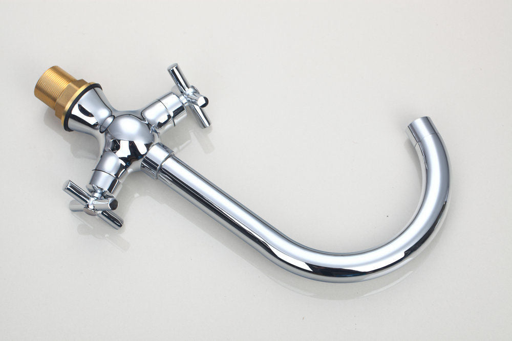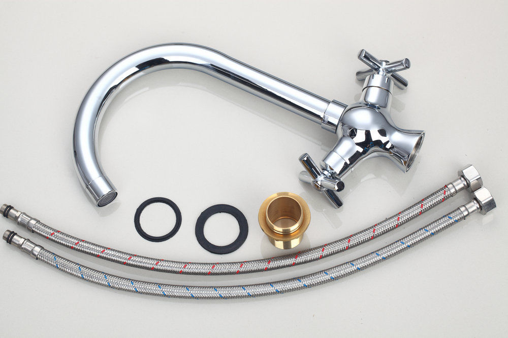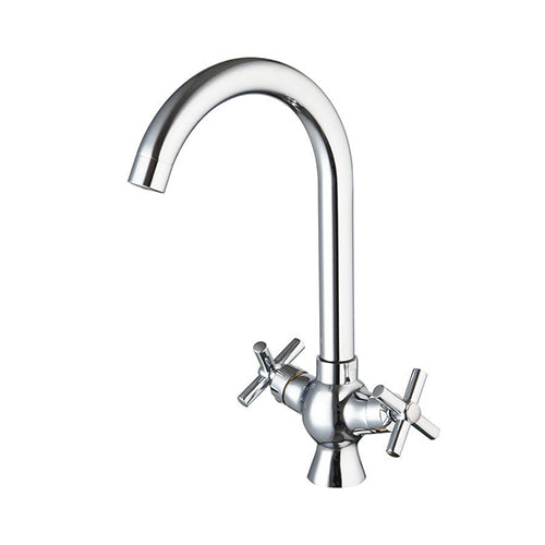 Deze chrome keukenkraan met klassieke draaihendels is een aanwinst voor uw keuken.